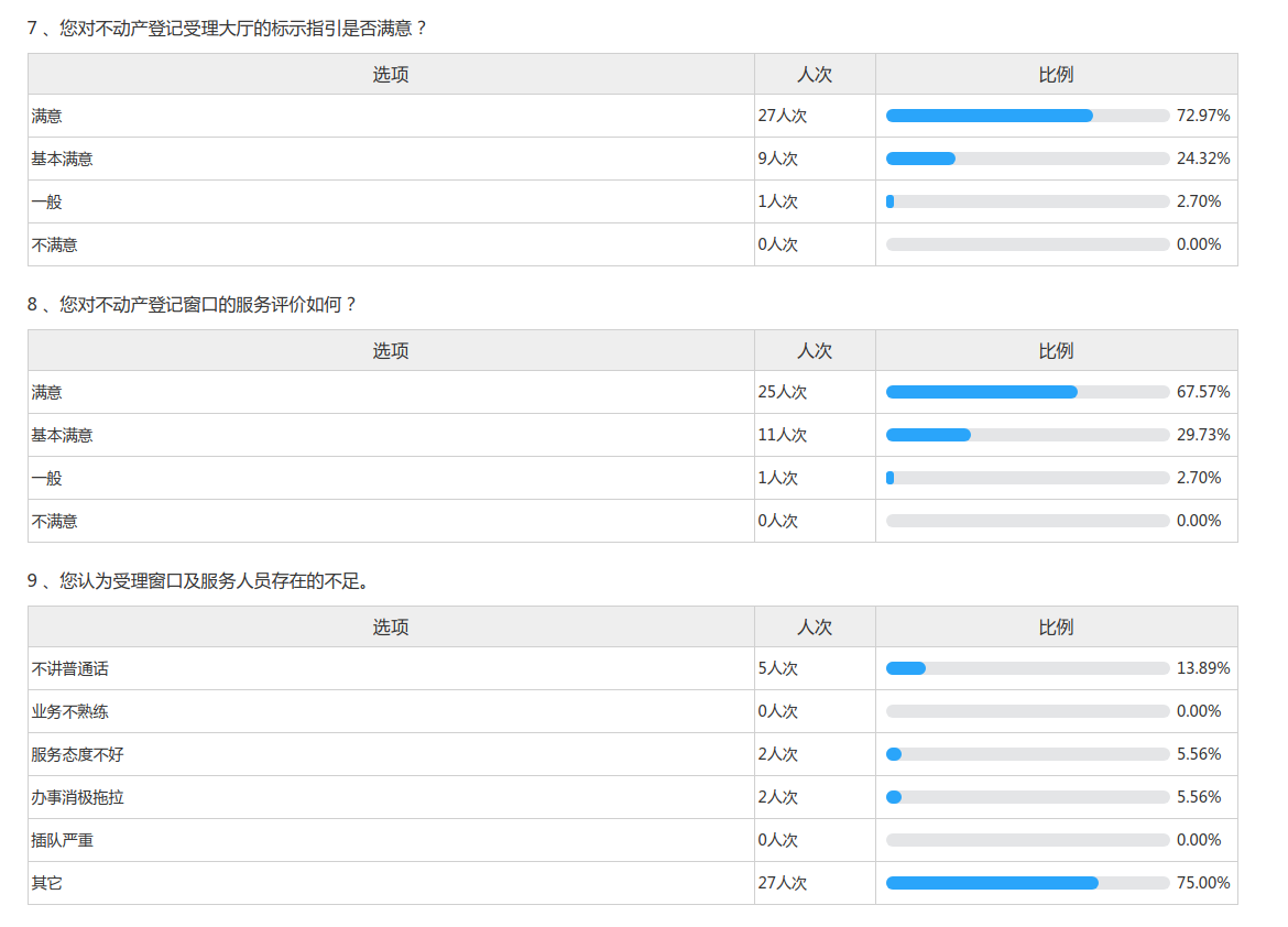 - 7、您对不动产登记受理大厅的标示指引是否满意?
