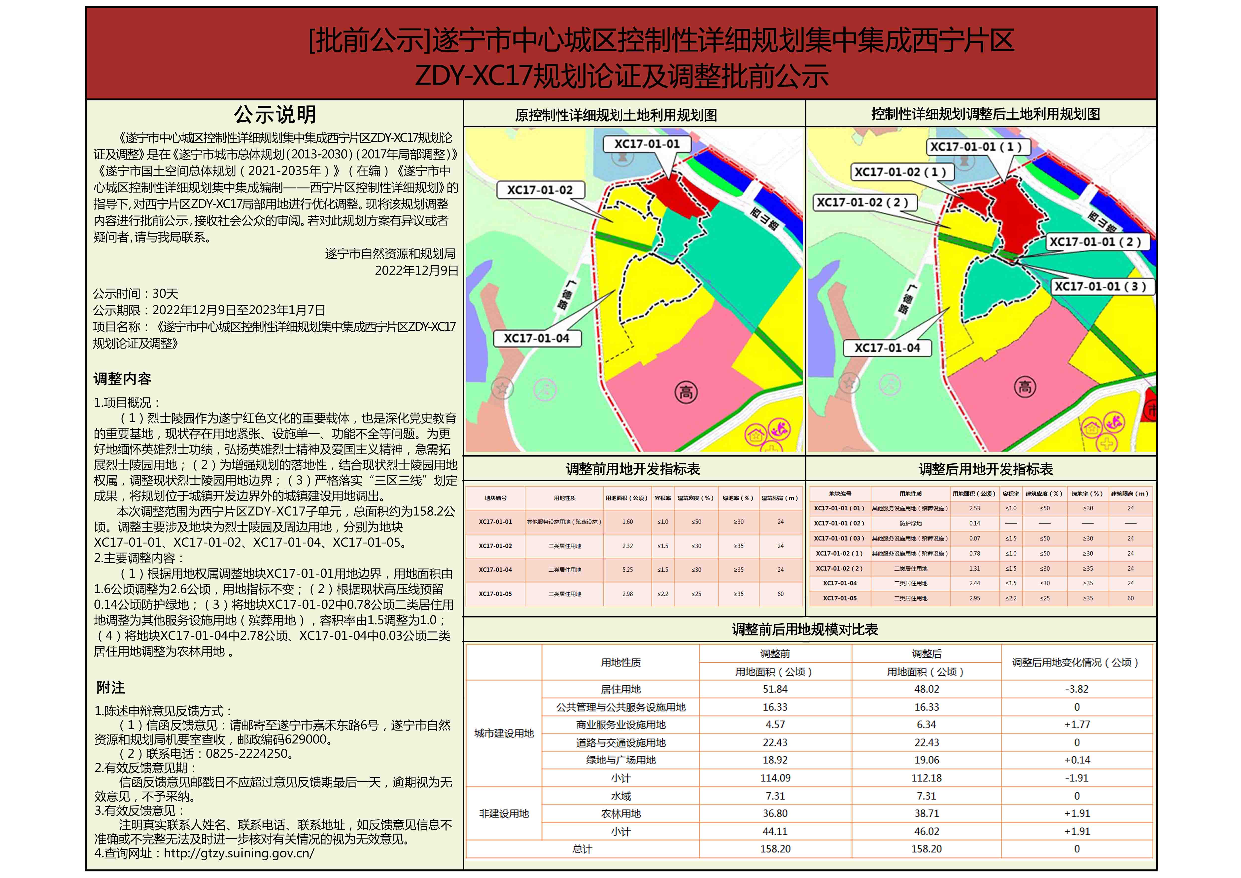 [批前公示]遂宁市中心城区控制性详细规划集中集成西宁片区ZDY-XC17规划论证及调整批前公示