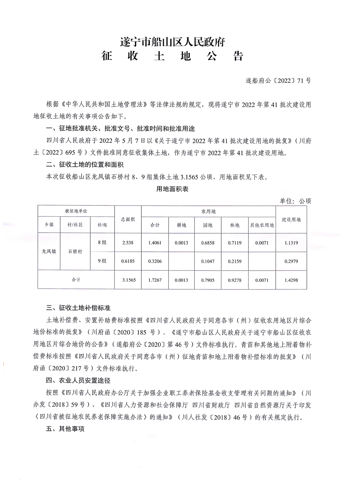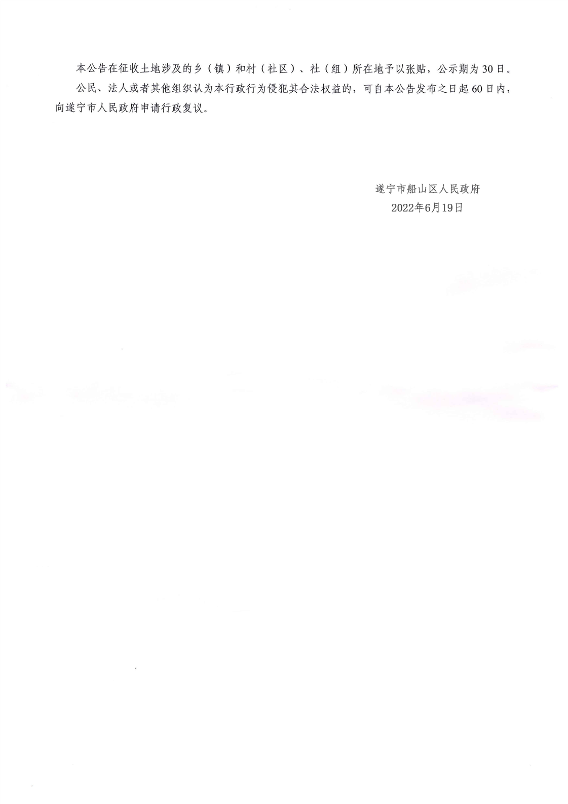 遂宁市船山区人民政府征收土地公告(遂船府公〔2022〕71号)2022年第41批次