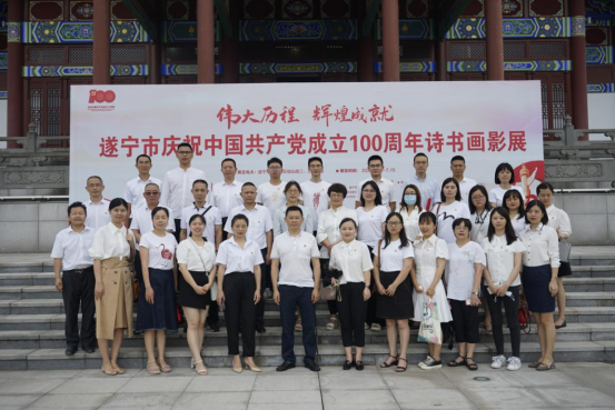 随后,遂宁市自然资源和规划局党员干部走进临江阁参观遂宁市庆祝中国共产党成立100周年诗书画影展,开展“书画‘述’党史 翰墨铭初心”活动。以“伟大历程 辉煌成就”为主题的遂宁市庆祝中国共产党成立100周年诗书画影展精选了100件美术作品、100件摄影作品、100件诗词及书法作品,通过视觉艺术展现民族命运,记录城市变迁,讲述遂宁故事。