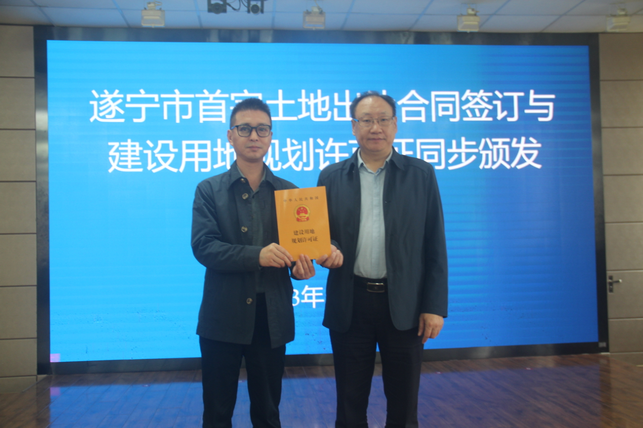 让企业点赞的“遂宁速度”,来自全省首例“拿地即领证”签约仪式的现场。当天,市自然资源和规划局和遂宁市天盛高新投资有限责任公司签订《国有土地使用权出让合同》,并同步核发《建设用地规划许可证》。