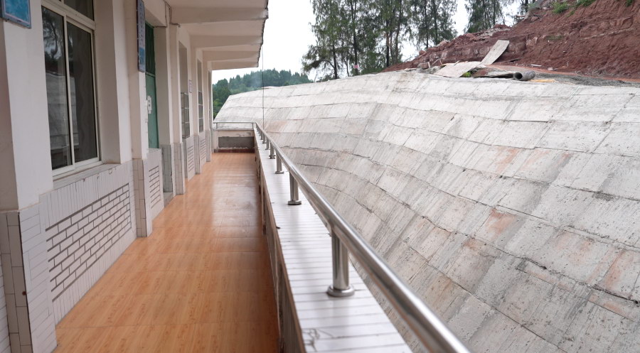 经过半年持续观测与风险评估,相关单位确定需通过工程治理彻底消除隐患。2024年1月,该项目纳入四川省自然资源厅项目储备库;2025年,97万元专项资金下达用于治理。“宿舍楼后方山体崩塌范围大,采用护面墙工艺的部分已完工,现在正在推进操场区域挡板墙施工,先挖桩再浇筑混凝土,预计9月底全部完工。”项目现场负责人唐松林说。