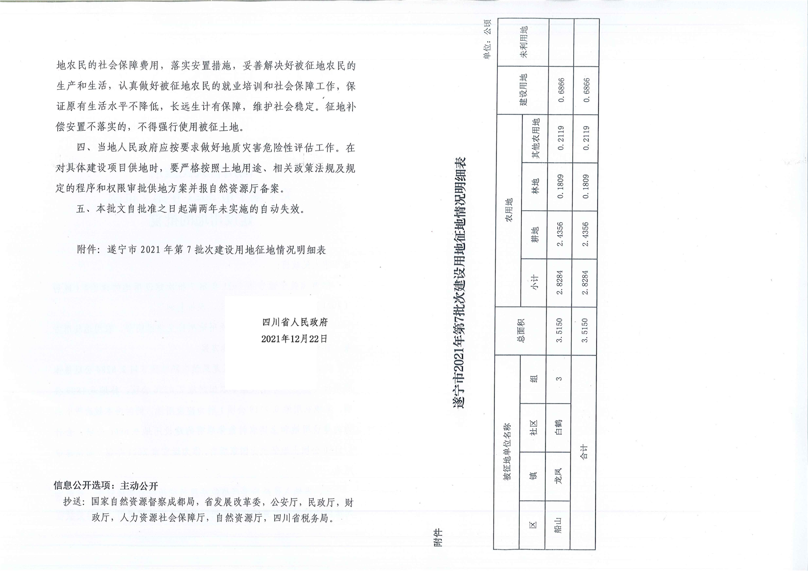 四川省人民政府关于遂宁市2021年第7批次建设用地的批复