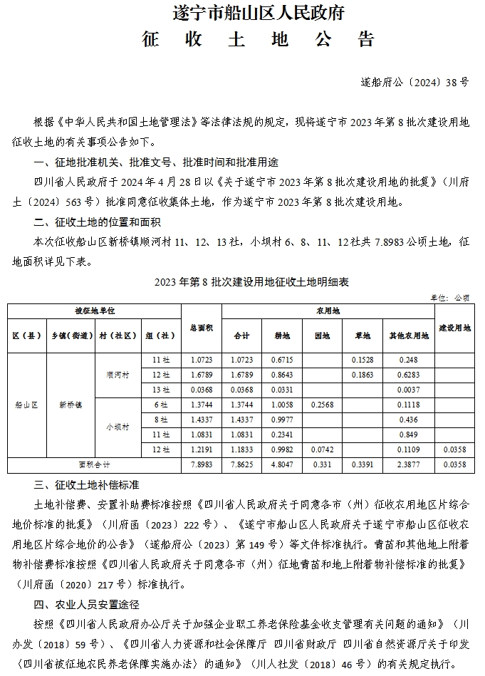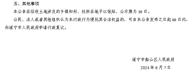 遂宁市船山区人民政府征收土地公告(遂船府公〔2024〕38号)