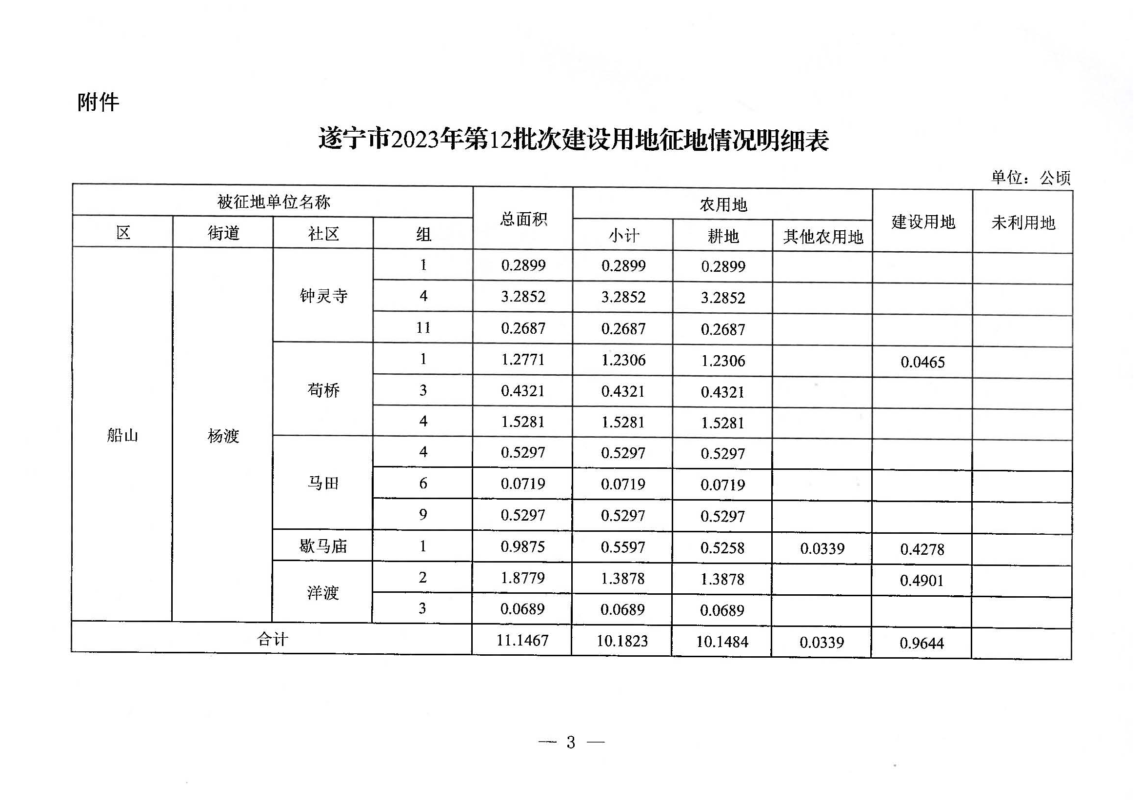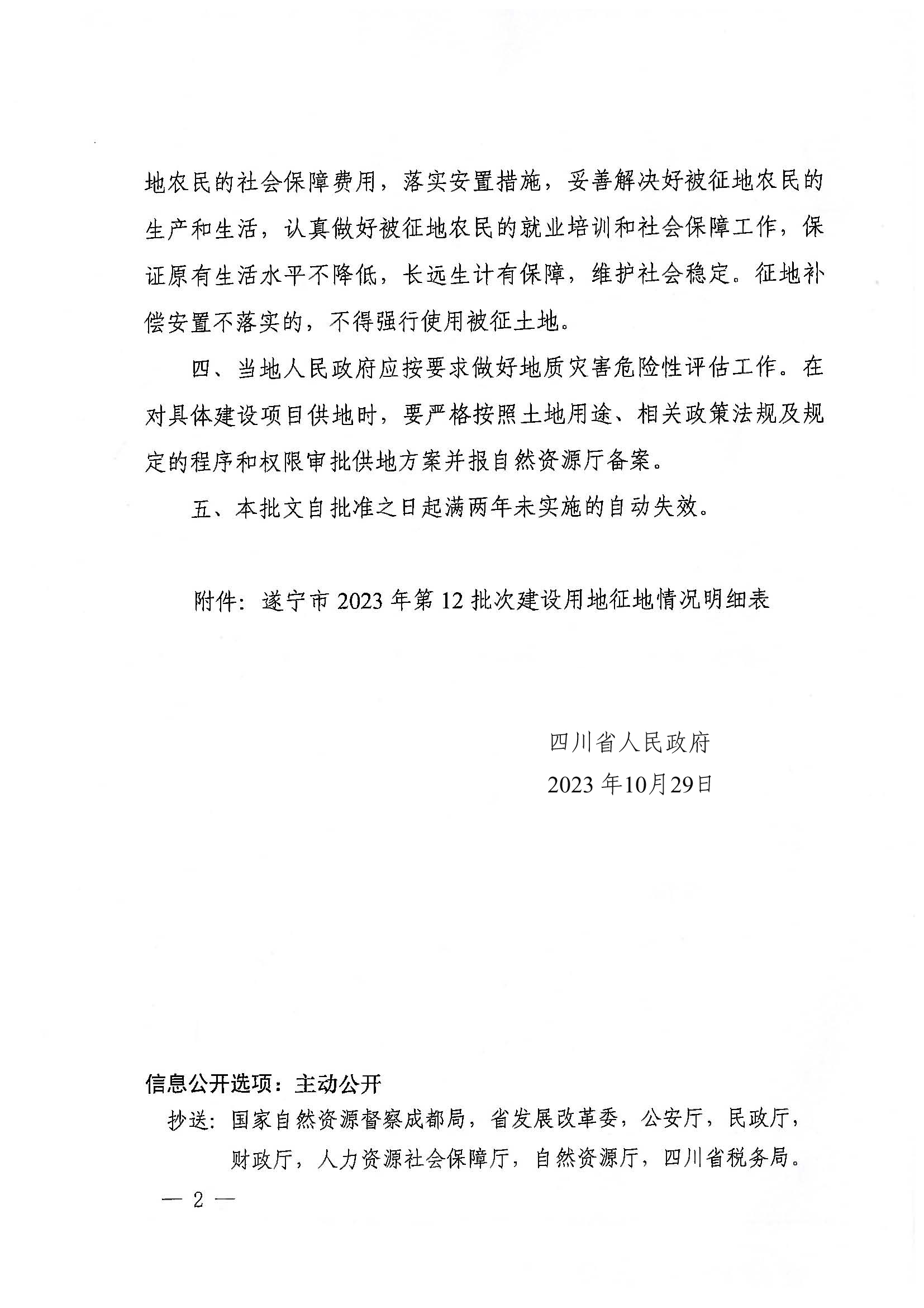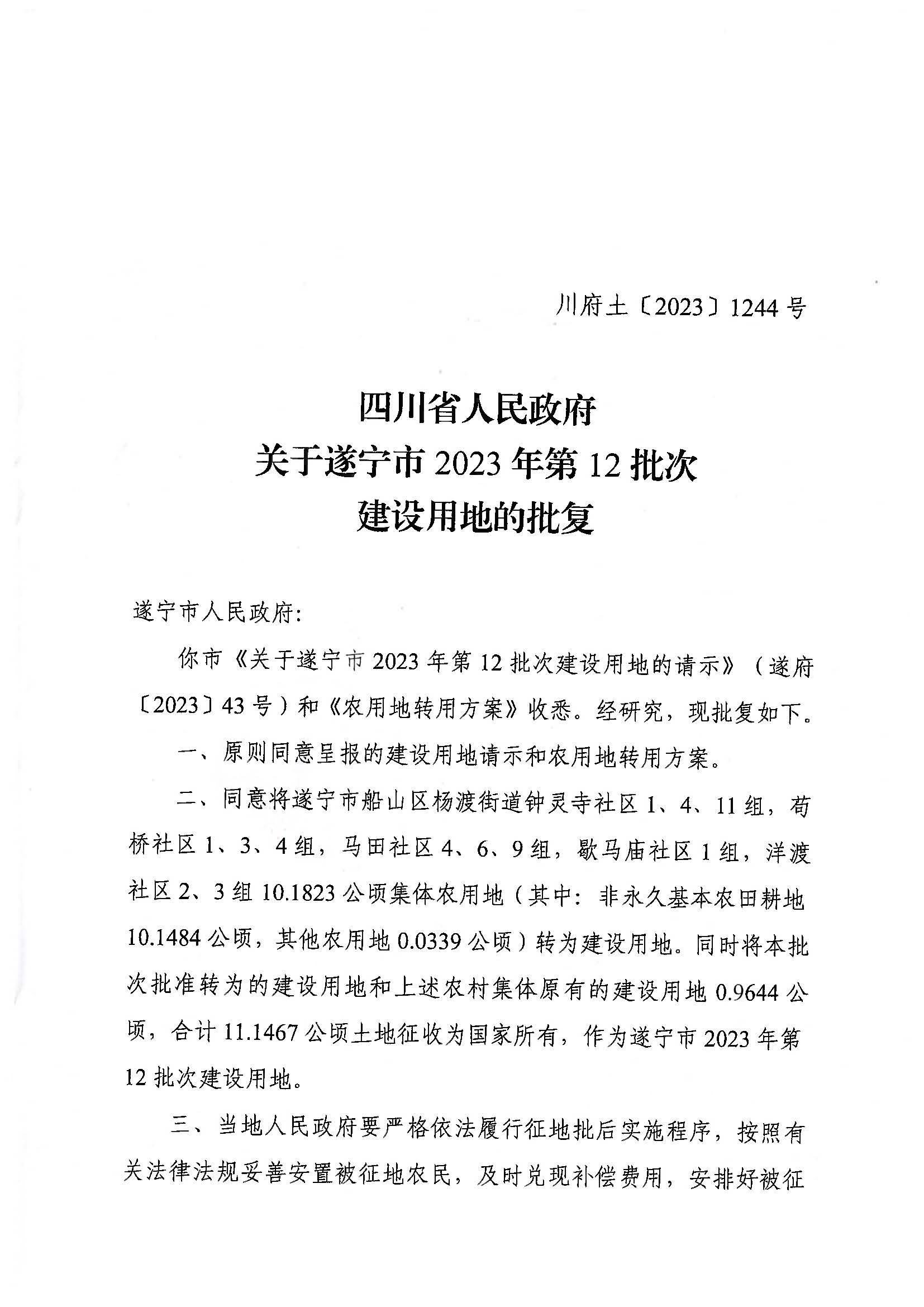 四川省人民政府关于遂宁市2023年第12批次建设用地的批复(川府土〔2023〕1244号)