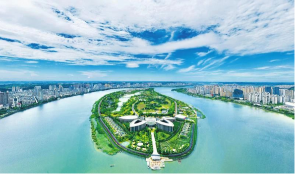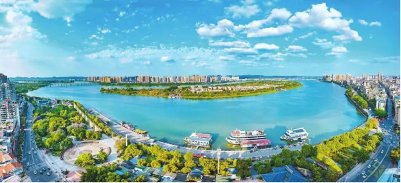 中心城区:立足“两山三水拥一城”的地形地貌,不与水争流、不与山争地,规划形成“一城两带六区”空间结构,将山、水、湖、岛等有机融入,促进城市在绿水青山中自然生长。
