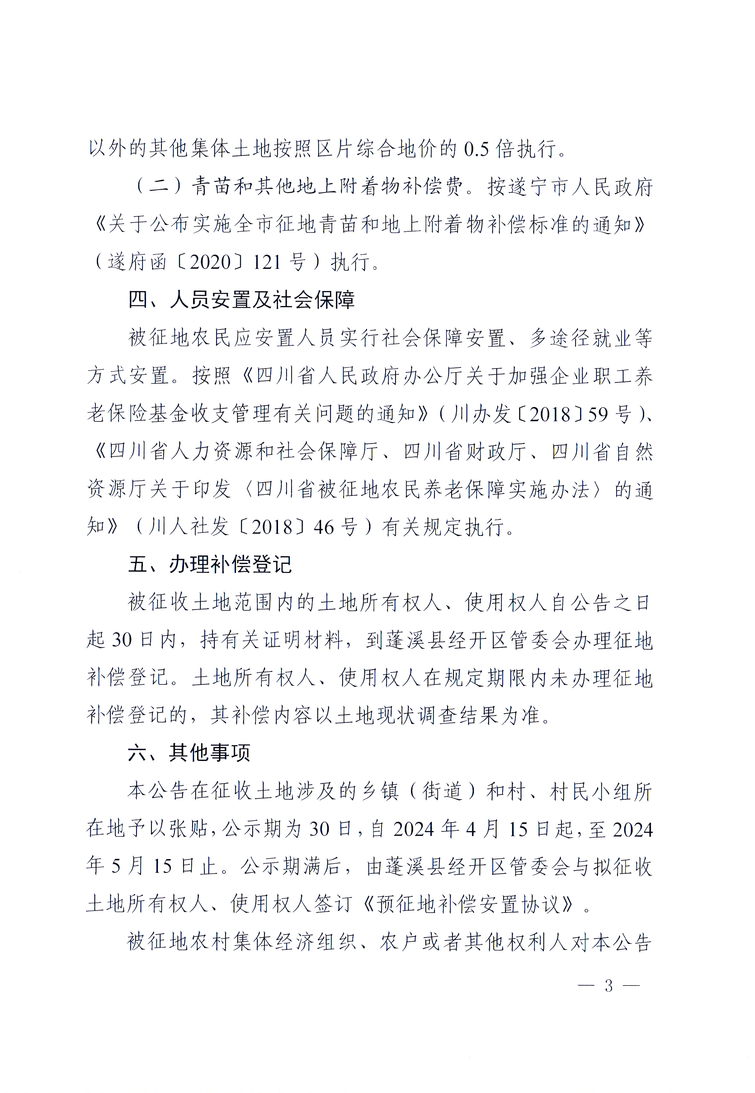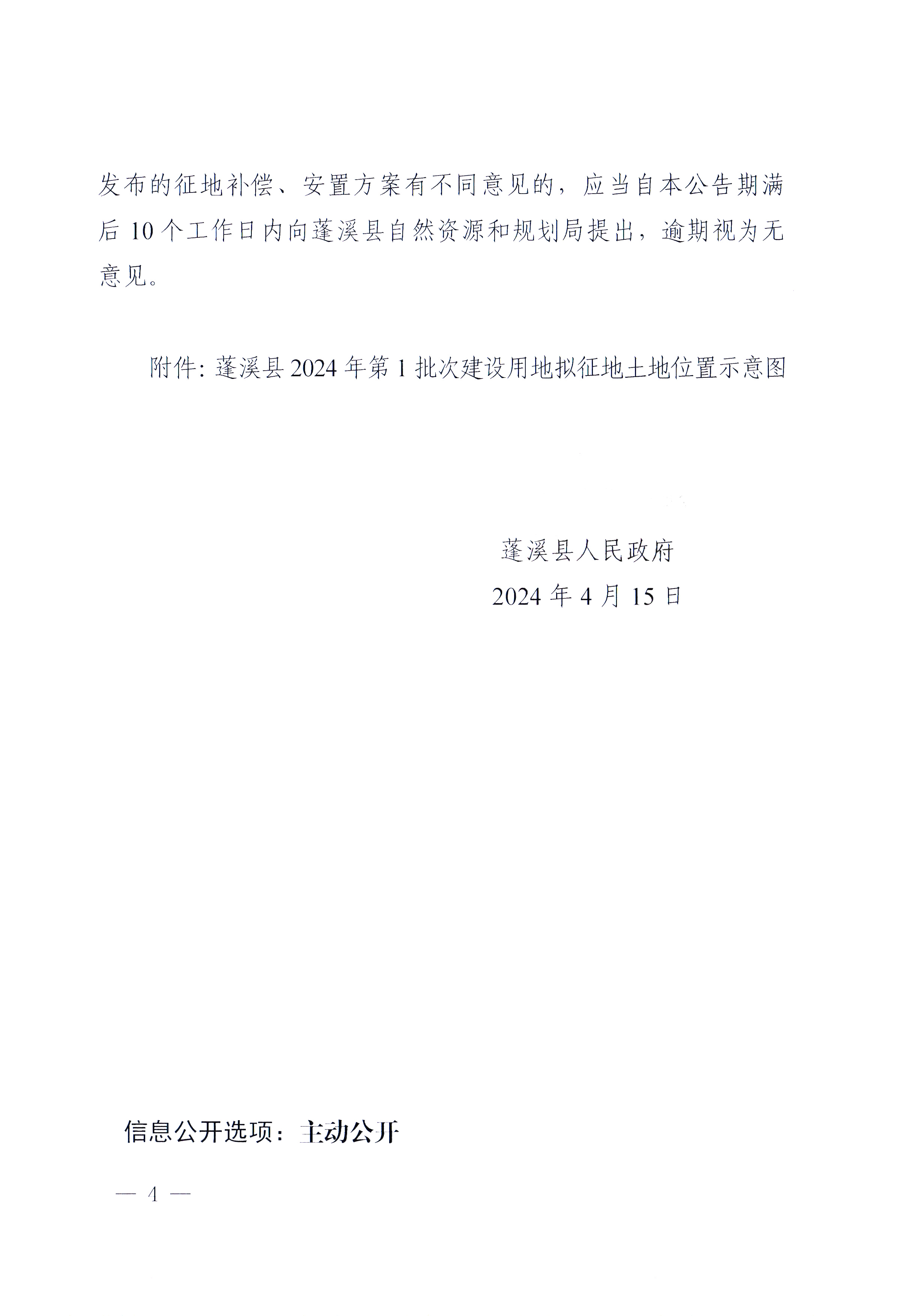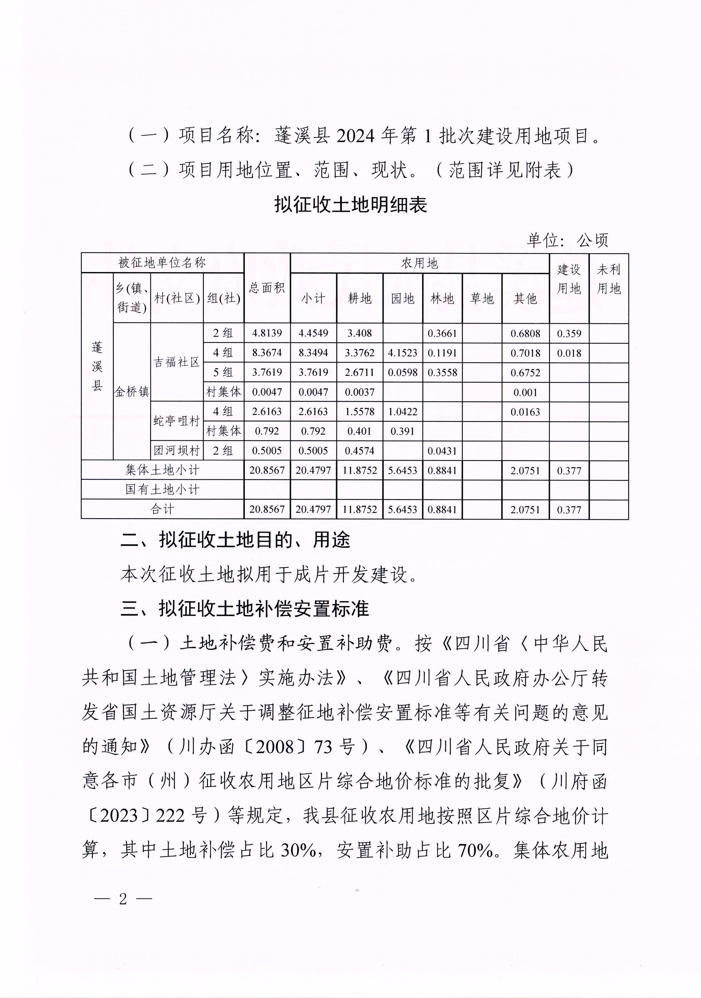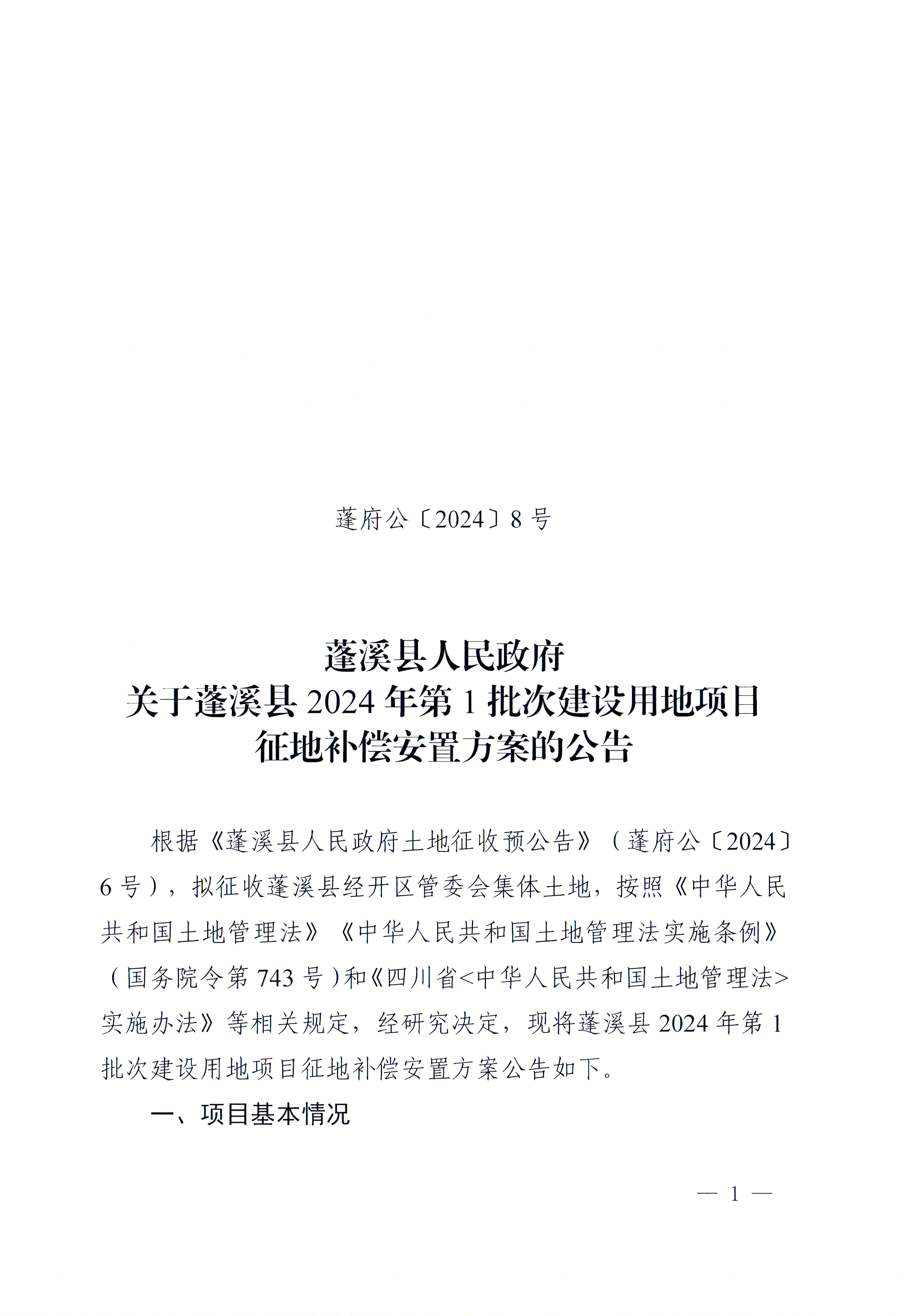 蓬溪县人民政府关于蓬溪县2024年第1 批次建设用地项目征地补偿安置方案的公告(蓬府公〔2024〕8号)