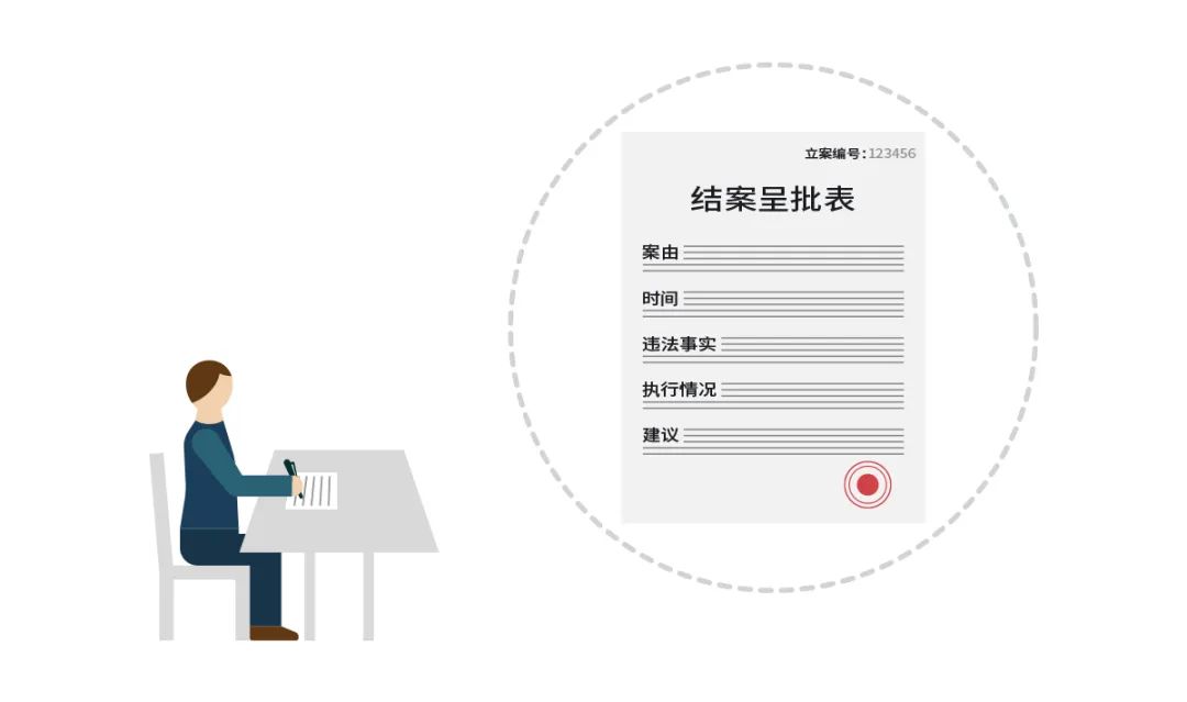 结案呈批:符合结案条件的,承办人员应当填写《结案呈批表》,报自然资源主管部门负责人批准后结案。《结案呈批表》应当载明案由、立案时间、立案编号、调查时间、当事人、主要违法事实、执行情况、相关建议等内容。对终止调查或者终结执行但地上违法新建建筑物或者其他设施尚未处置的,结案呈批时,可以建议将有关情况报告或者函告地上违法新建建筑物或者其他设施所在地政府,由其依法妥善处置。