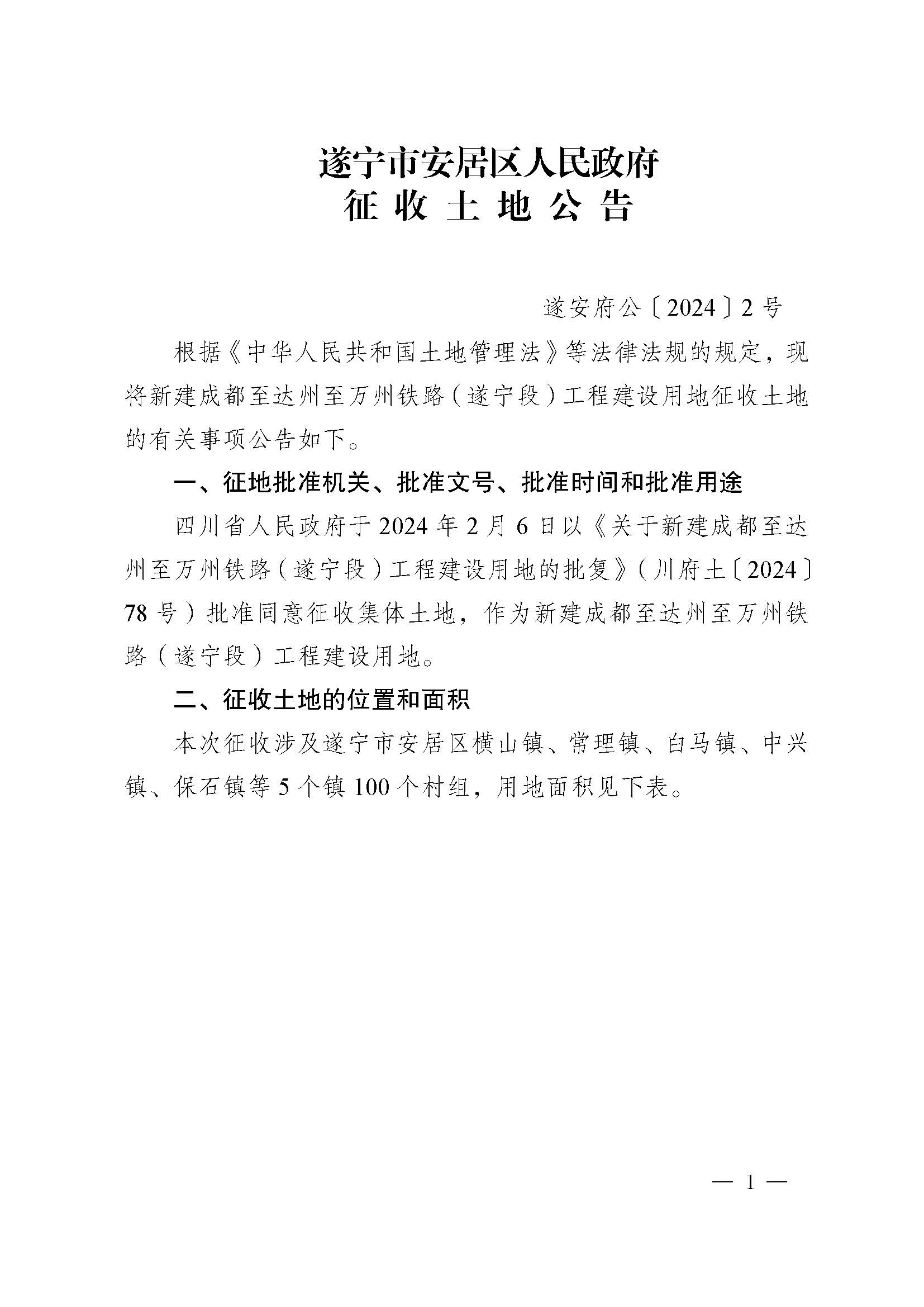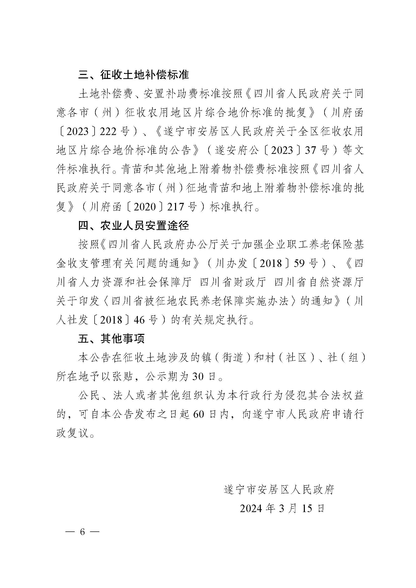 遂宁市安居区人民政府征收土地公告 (遂安府公〔2024〕2号)