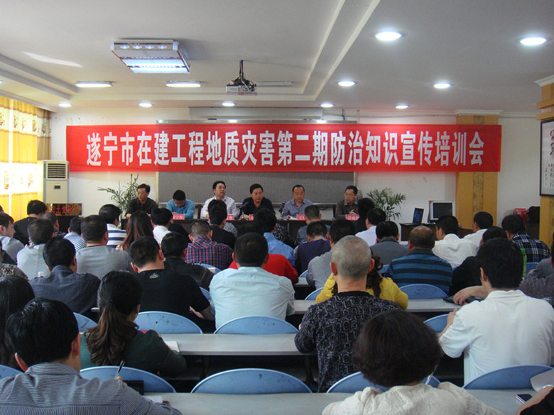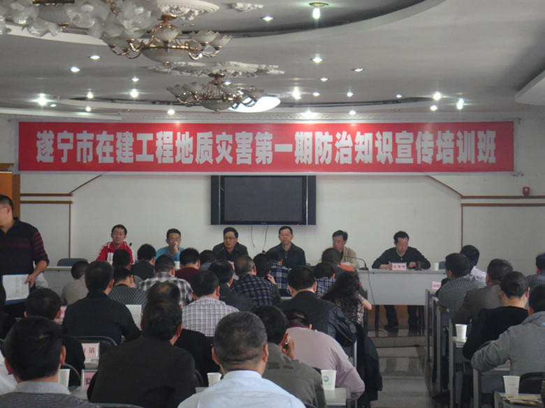 16日,我市在射洪县、大英县举行了两期在建工程地质灾害培训会,市发改委、市水务局、市气象局等市直部门、市直三园区管委会、全市国土资源系统、在建工程施工单位等相关人员约220人参加了培训,专家组进行了授课。会后,赵齐宣要求:要继续深入开展地质灾害防治知识的宣传培训工作,各县(区)要根据实际情况,开展灵活多样的地质灾害防治知识培训;全面做好汛前地质灾害防治的准备工作;加强对地质灾害隐患的巡、排查,加大治理力度,做好“减法”工程;依法大力推进地质灾害危险性评估,严格执行地质灾害防治预案,积极整合资金,认真落实地质灾害防治的各项应急措施,确保防治工作的有效实施