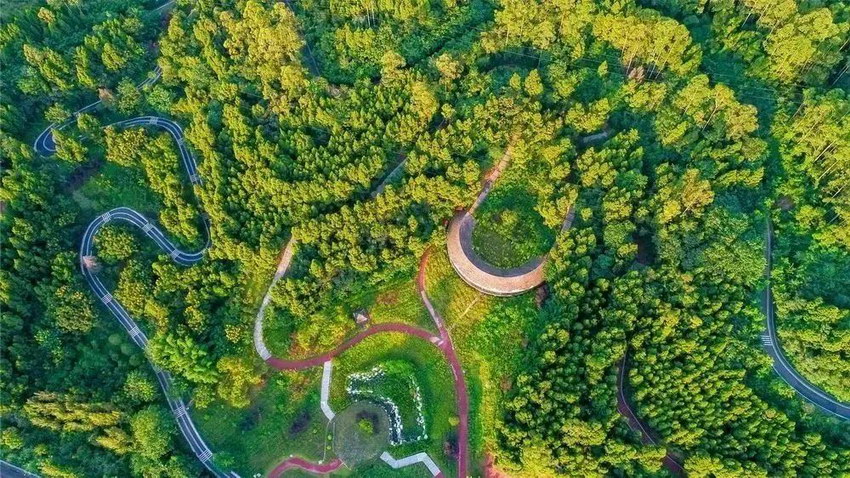 游山环道:广德绿道与灵泉绿道与部分涪江水都绿道形成闭合环线的游山环道,增强两山——大东山、大西山之间的联系,串联郊野公园形成游山环状绿道。