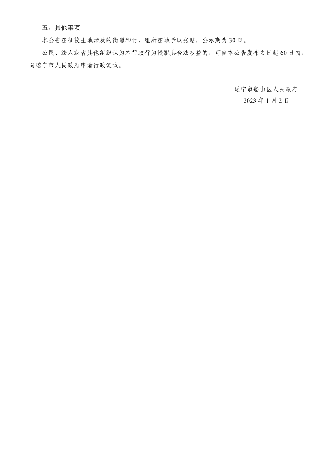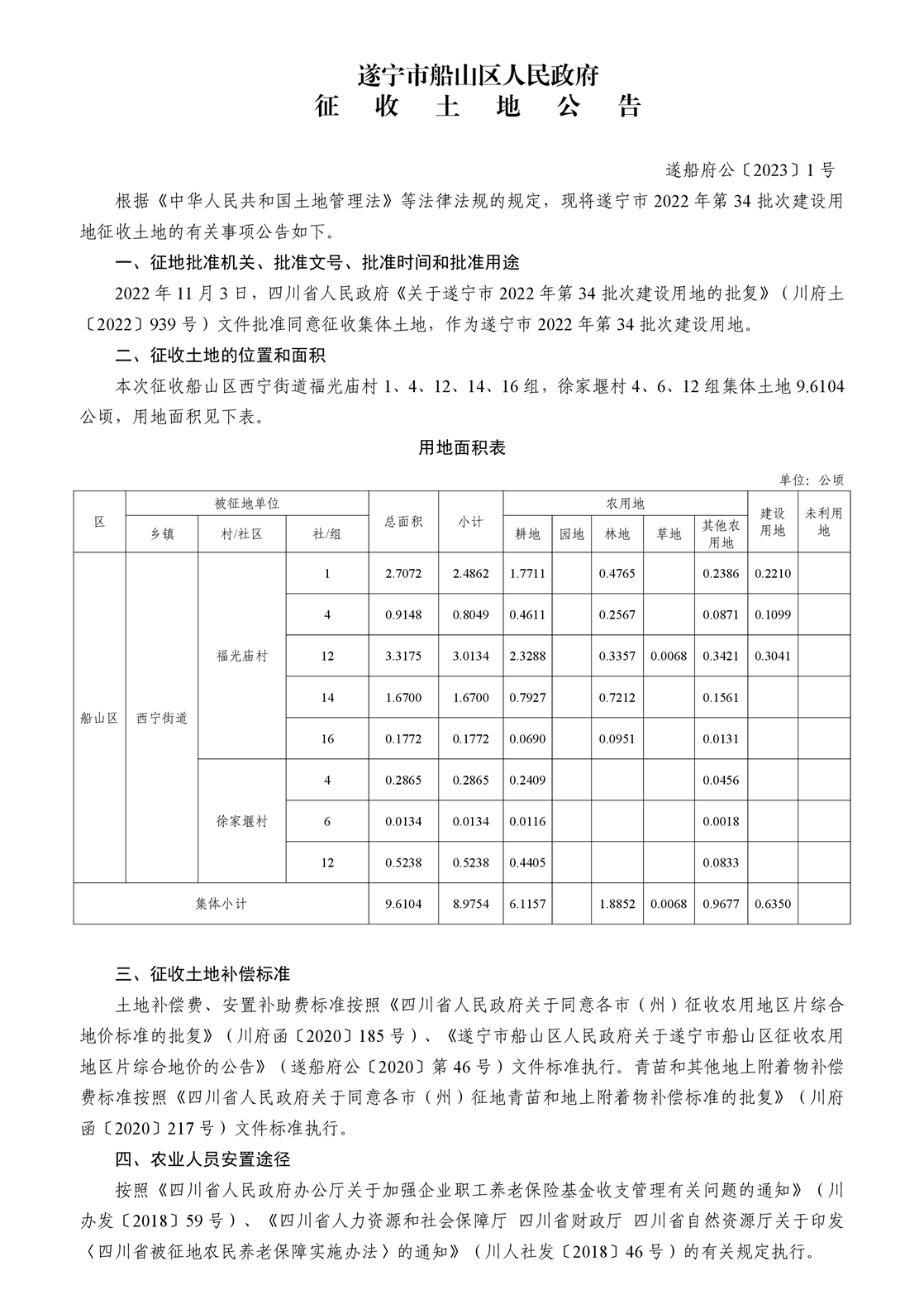 遂宁市船山区人民政府征收土地公告(遂船府公〔2023〕1号)2022年第34批次