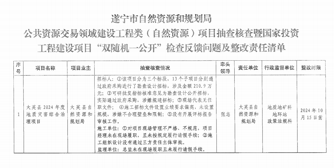 我局对全市自然资源和规划领域工程建设项目开展了“双随机、一公开”检查,现将检查发现问题公示如下: