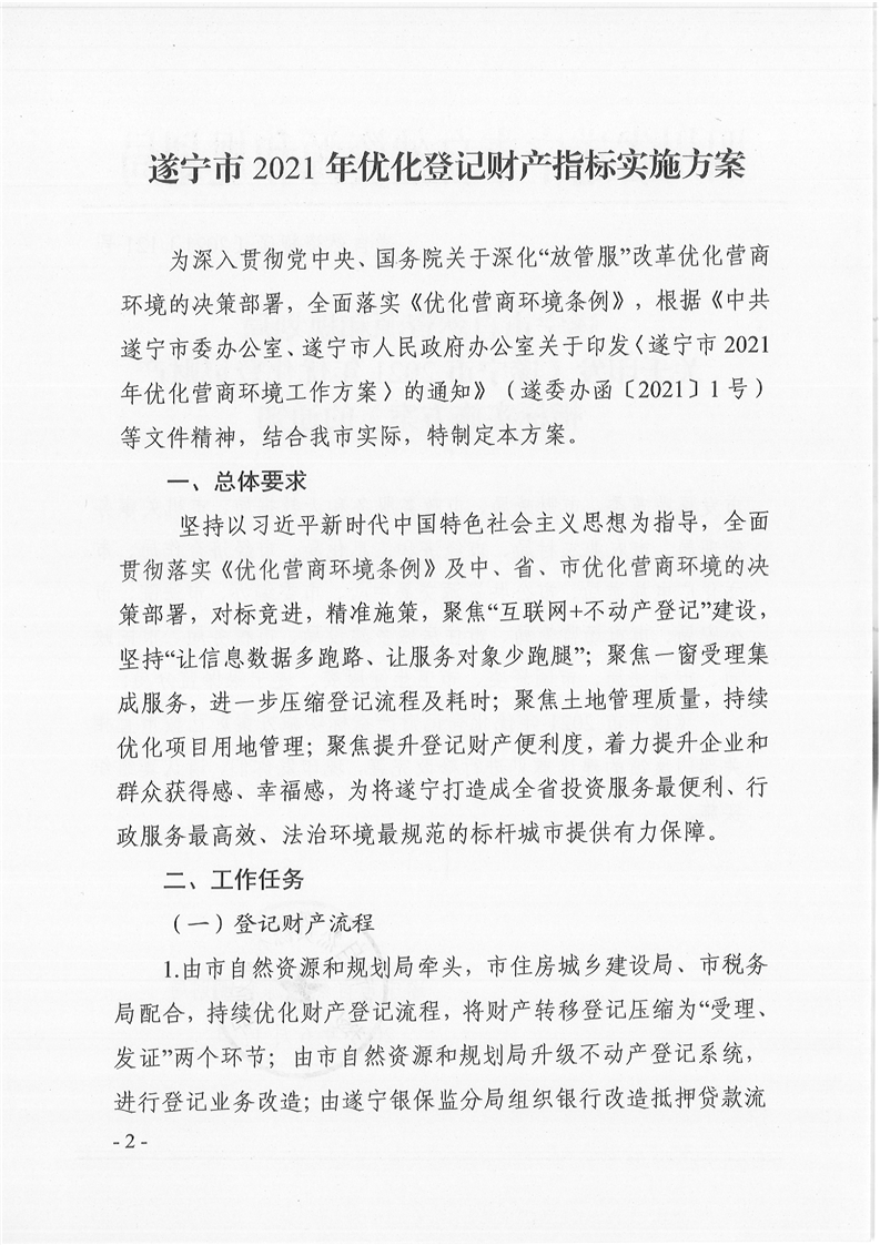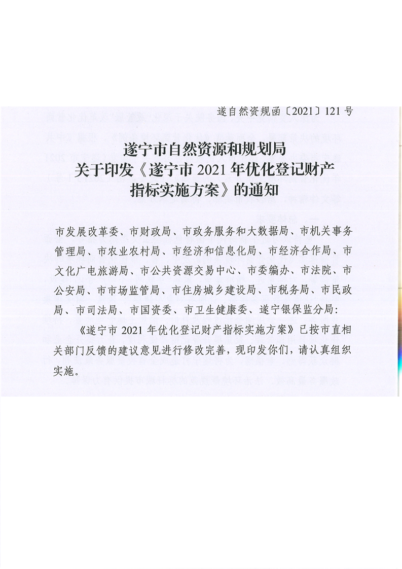 关于印发《遂宁市2021年优化登记财产指标实施方案》的通知