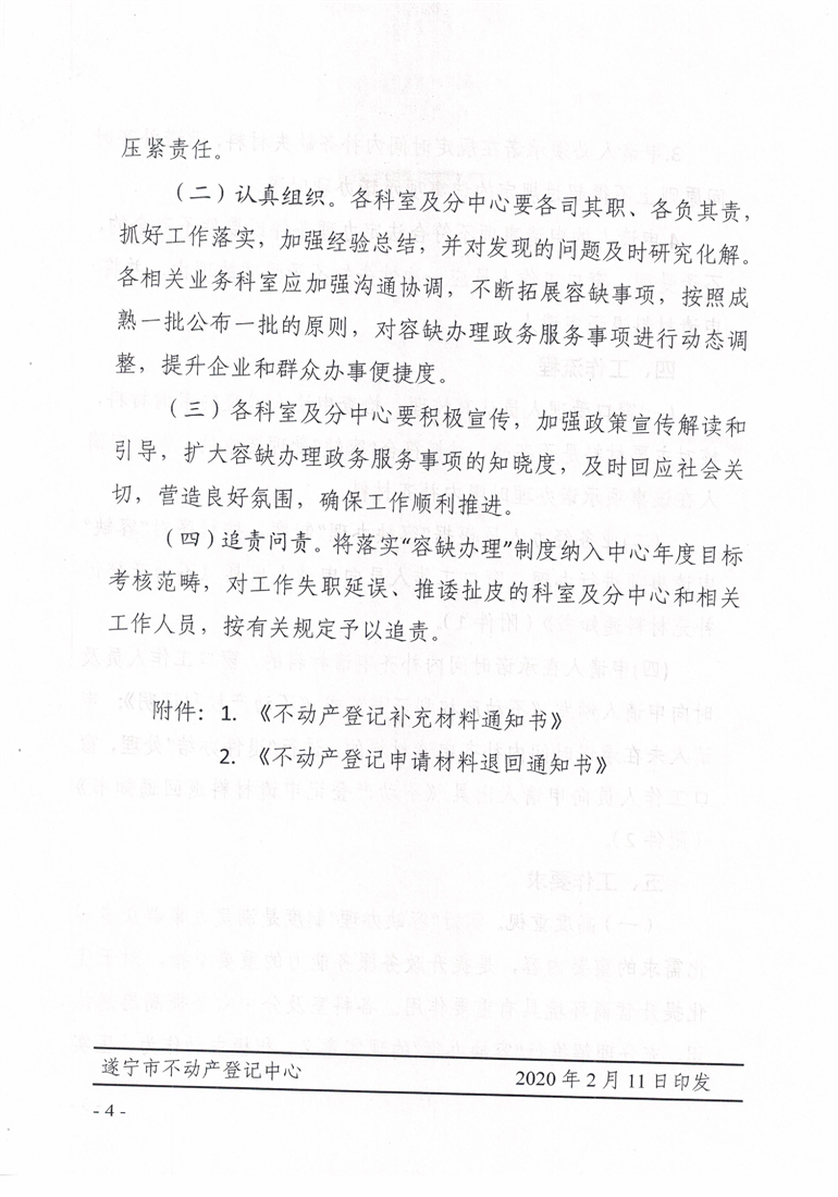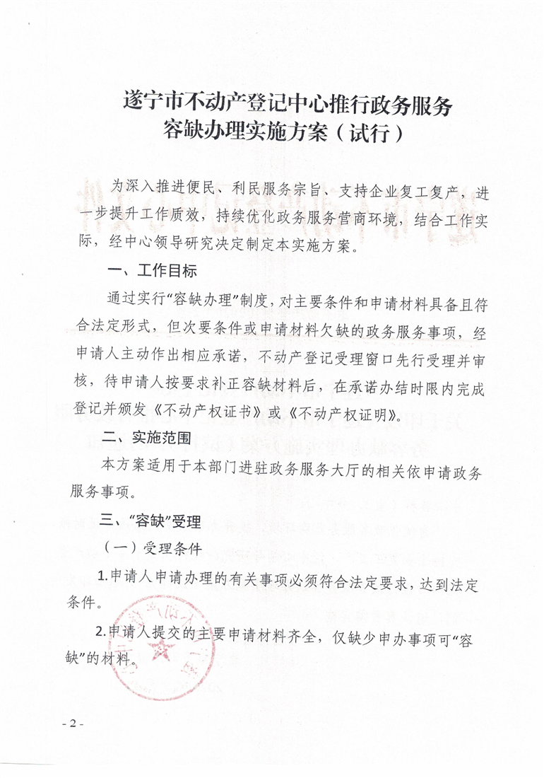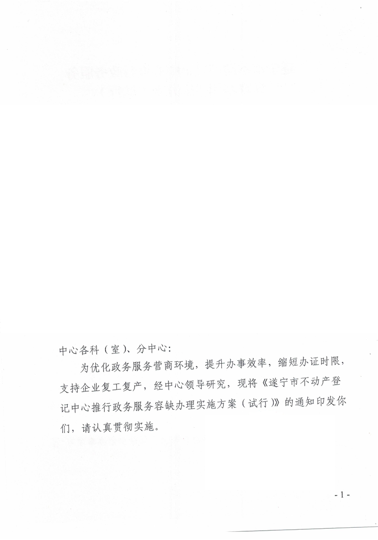 关于印发《遂宁市不动产登记中心推行政务服务容缺办理实施方案(试行)》的通知