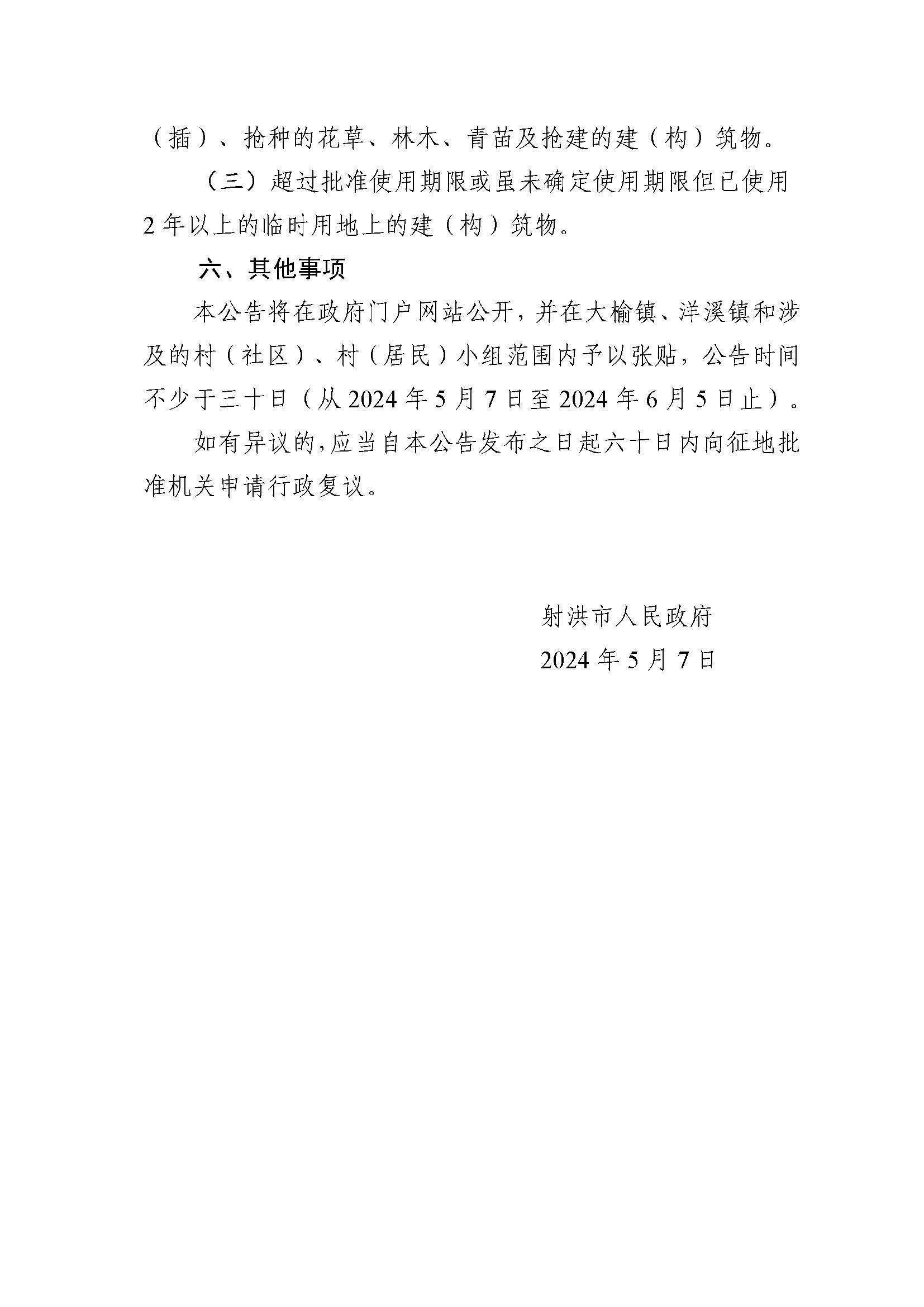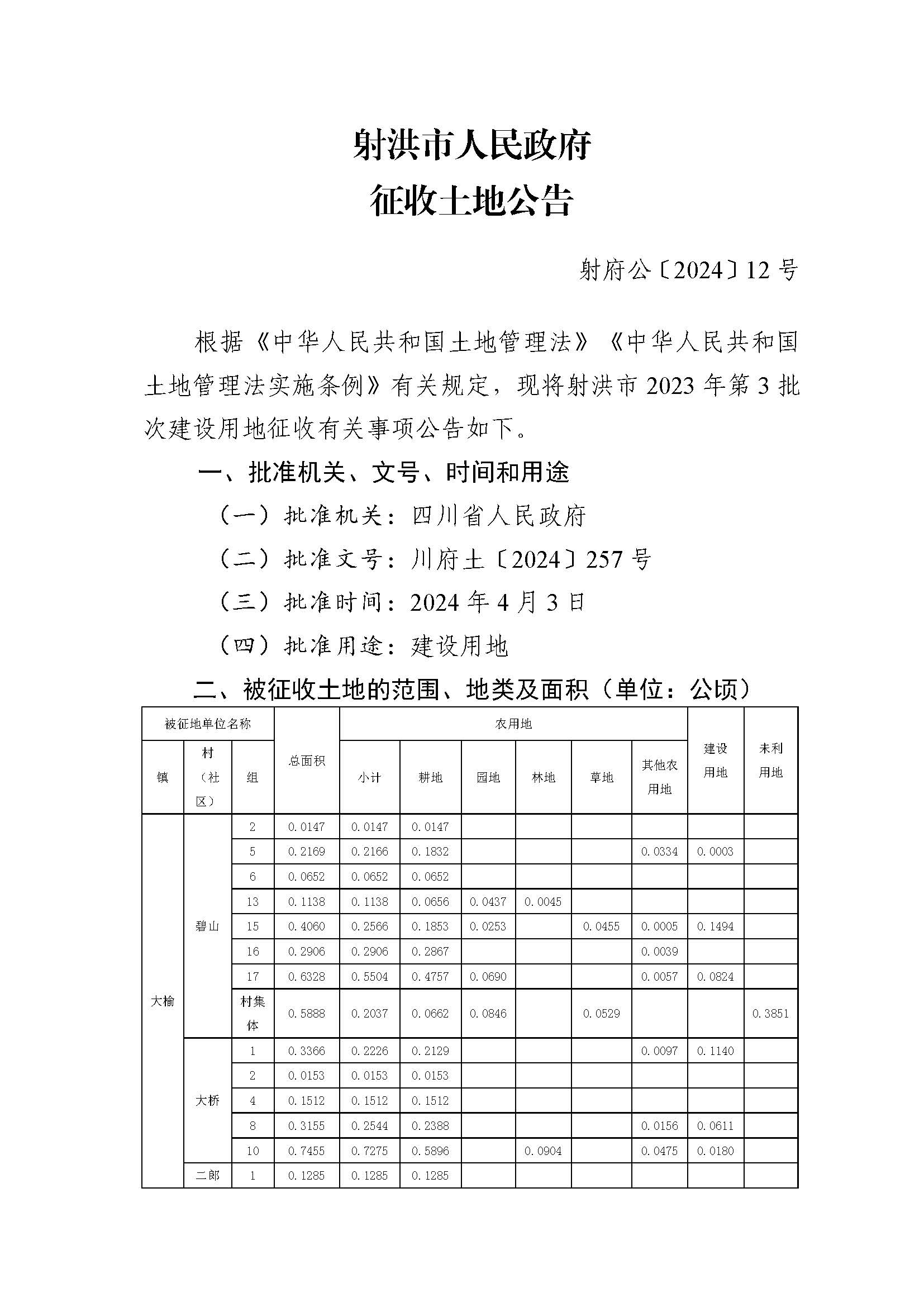 射洪市人民政府征收土地公告(射府公〔2024〕12号)