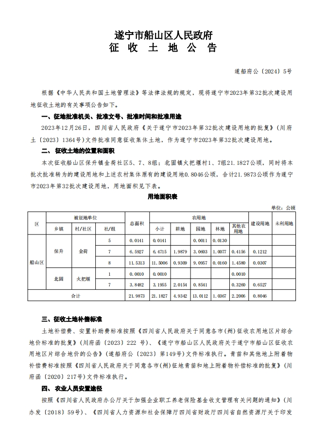 遂宁市船山区人民政府征收土地公告 (遂船府公〔2024〕5号)