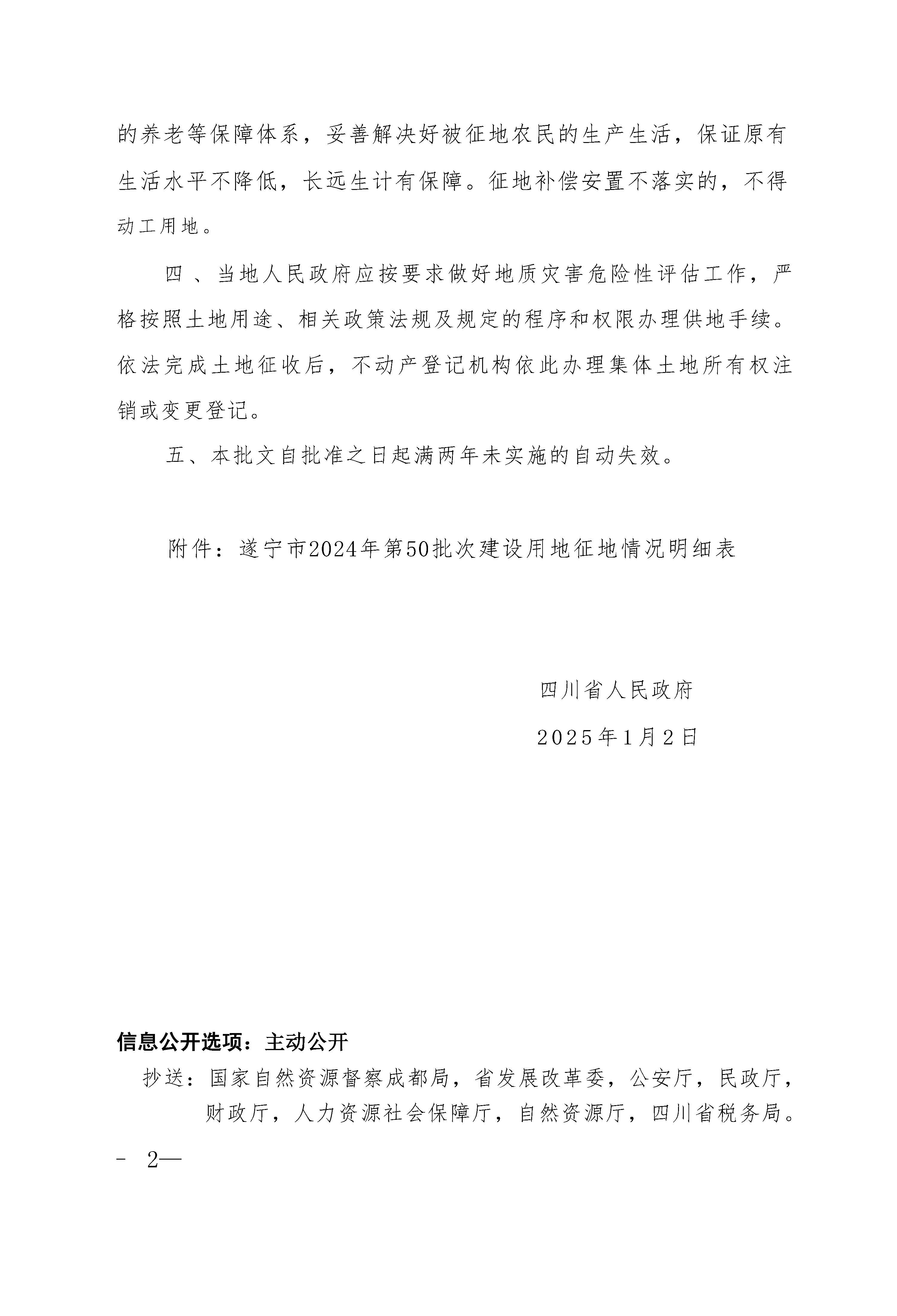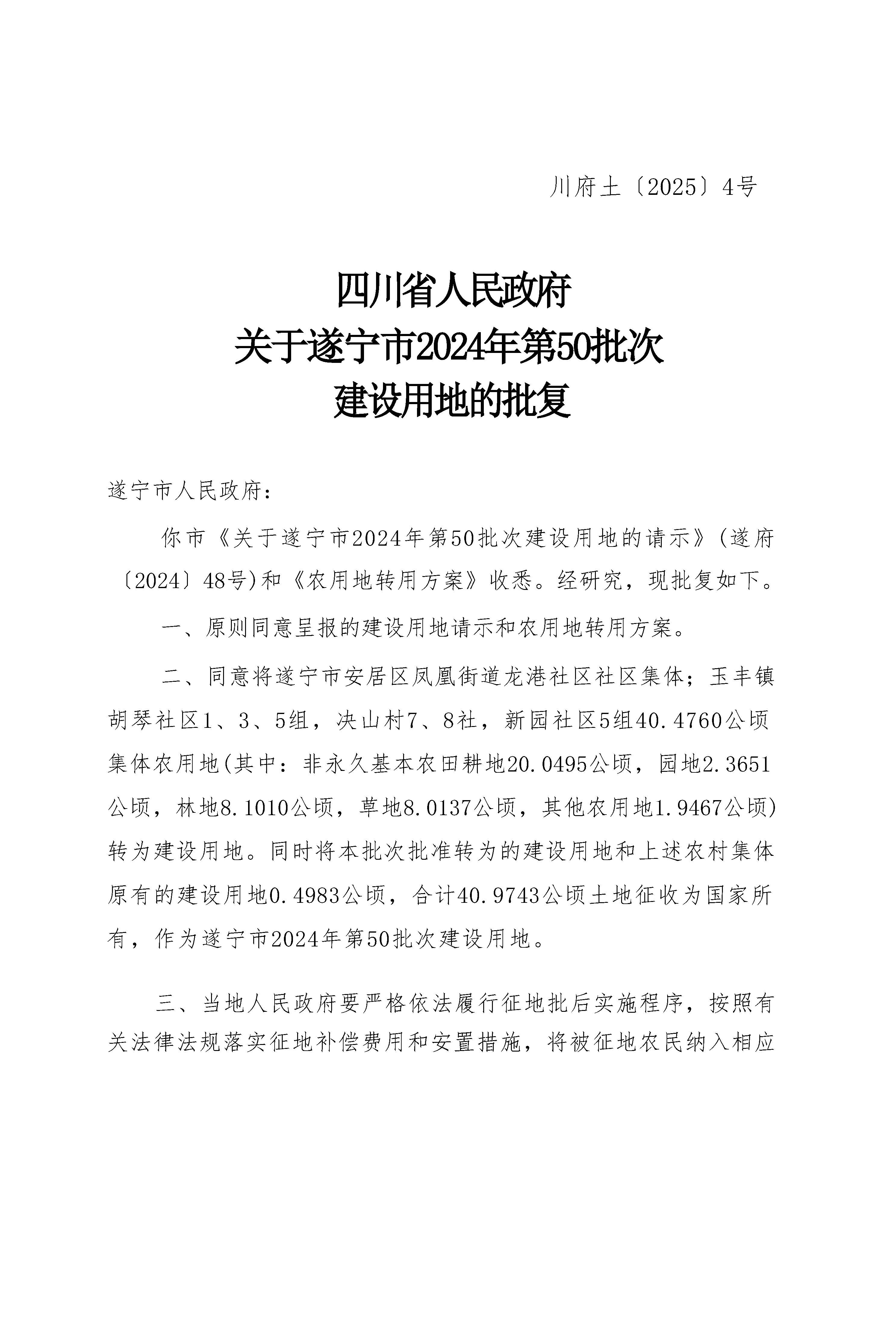 四川省人民政府《关于遂宁市2024年第50批次 建设用地的批复》川府土〔2025〕4号