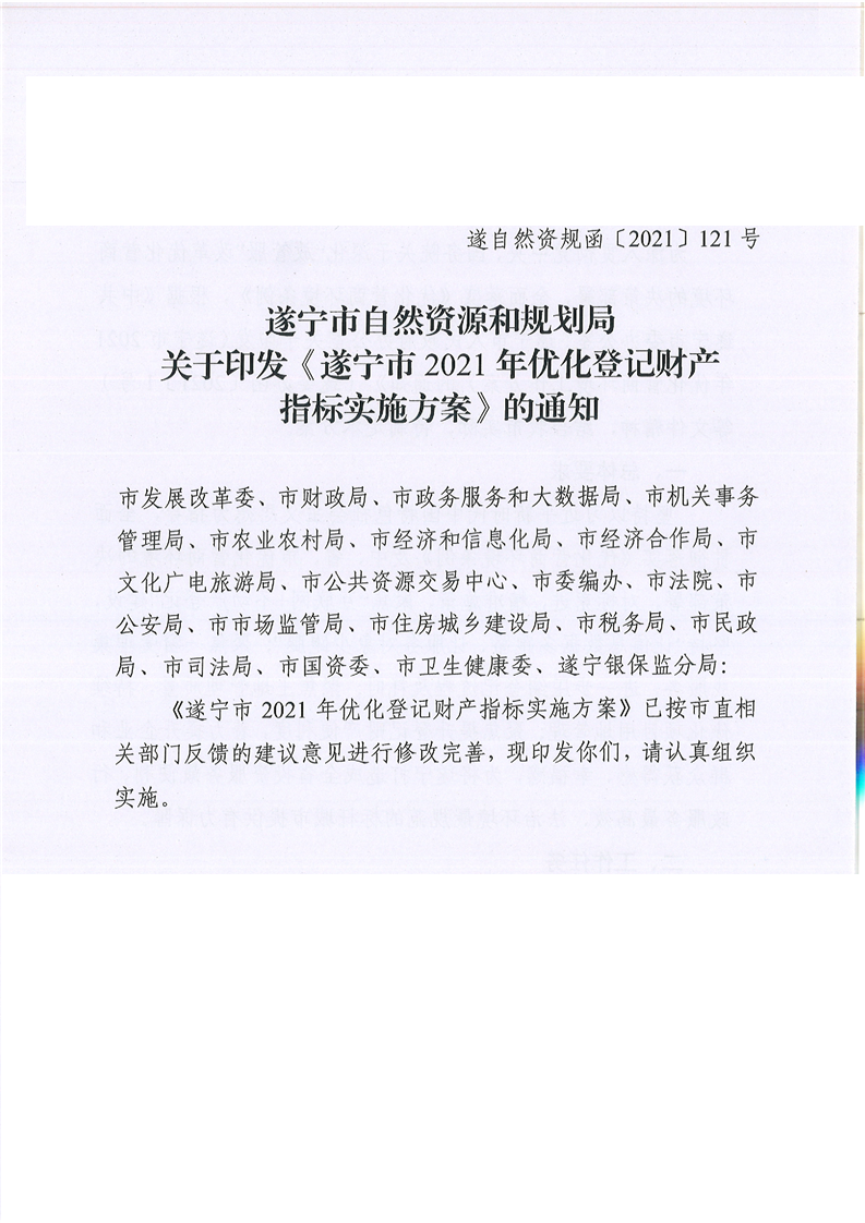 关于印发《遂宁市2021年优化登记财产指标实施方案》的通知