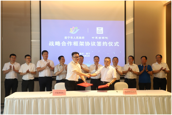 6月11日,遂宁市人民政府与中国建筑西南设计研究院有限公司战略合作框架协议签约仪式顺利举行。中建西南院党委副书记、总经理陈勇,中建西南院副总经理彭浩,中建西南院总规划师郑小明,遂宁市委副书记、市长邓正权,遂宁市人大常委会副主任、遂宁市政府秘书长付勇,遂宁市政府副秘书长周宗利等领导参加仪式。签约仪式由遂宁市副市长雷云主持。