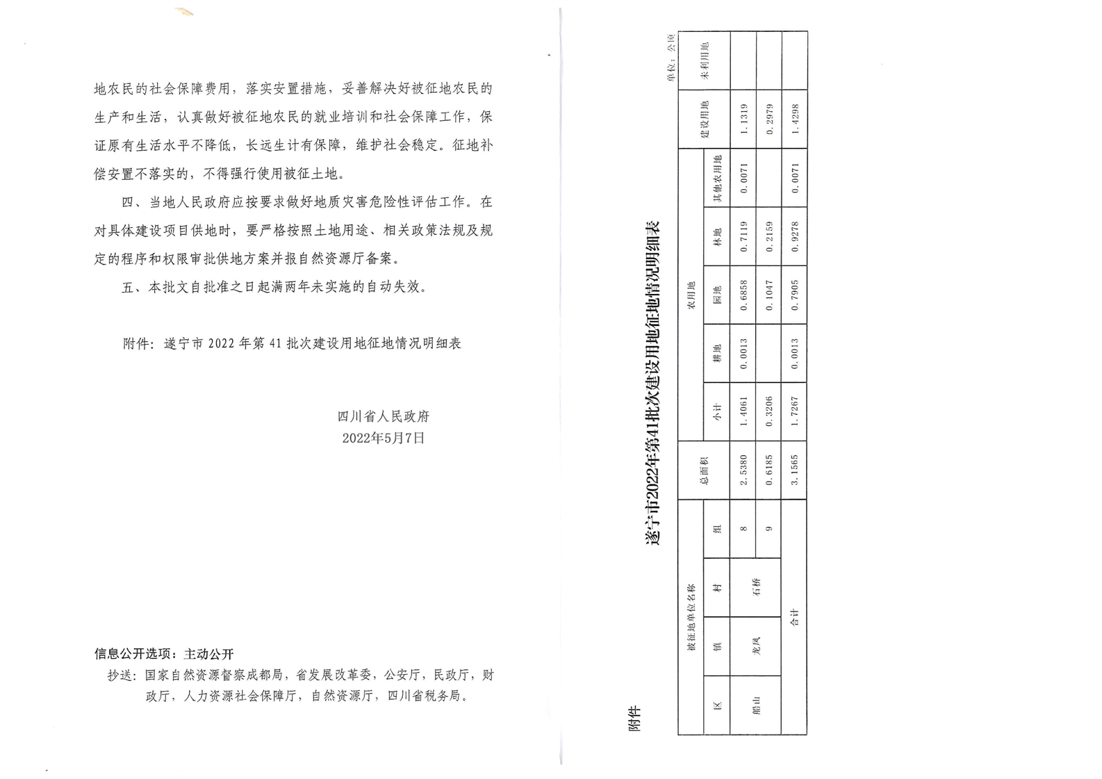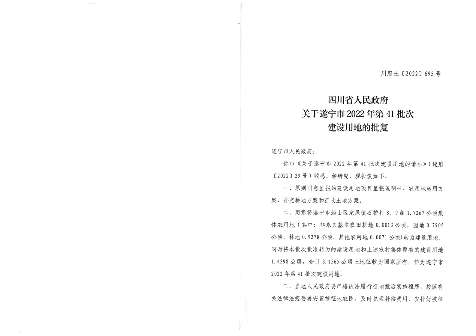 四川省人民政府关于遂宁市2022年第41批次建设用地的批复(川府土〔2022〕695号)