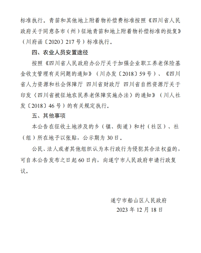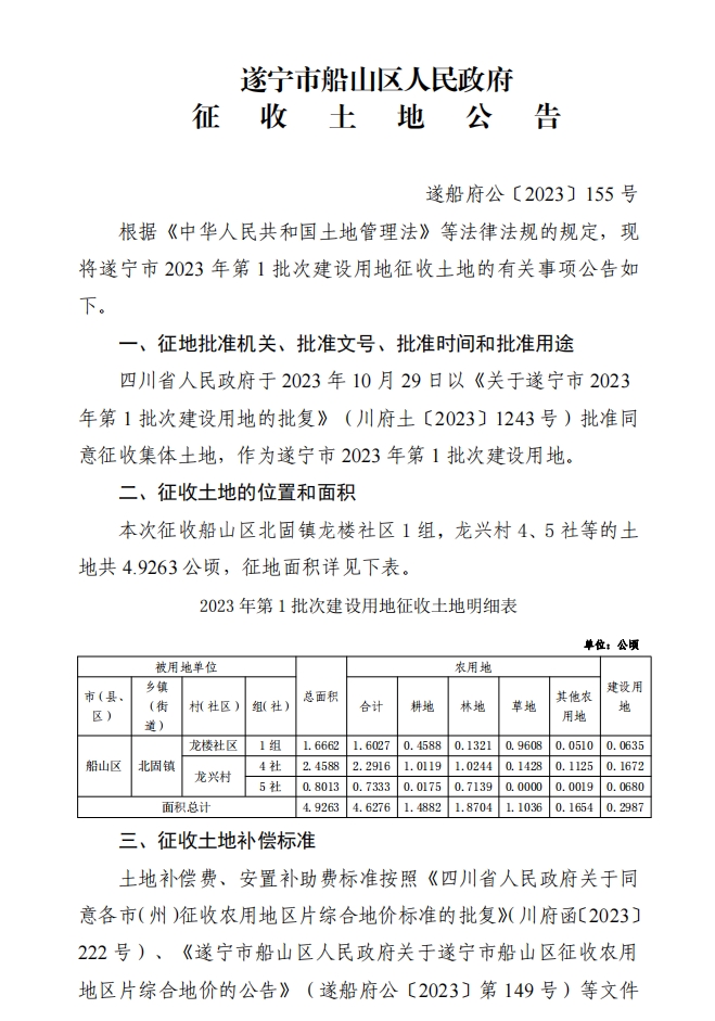 遂宁市船山区人民政府征收土地公告 (遂船府公〔2023〕155号)