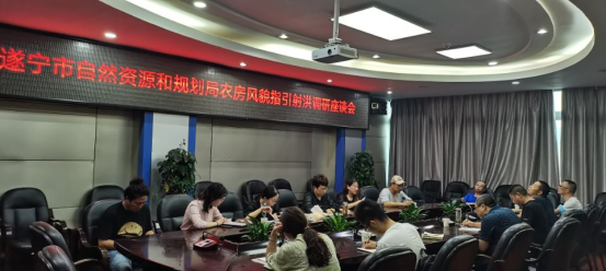 在随后召开的座谈会上,龙科长一行在听取射洪市自然资源和规划局对农房建筑户型、宅基地面积及风貌塑造的意见建议后,对射洪市在遂宁市范围内率先编制推广农房风貌图集工作表示高度肯定。龙映霞指出,本次《遂宁市美丽乡村风貌导则及民居设计图集》设计将在射洪市选取具有代表性的3个镇,每个镇选取2-3个村进行农房设计、风貌改造和选址指引,重点关注能够及时见成效的新建聚居点、土地增减挂钩安置点和传统村落保护民居。龙映霞强调,农房风貌要彰显地方特色风貌,体现文化底蕴,将每个院落打造成“最美庭院”,要以点带面,持续改善农村人居环境,建设生态宜居美丽乡村。