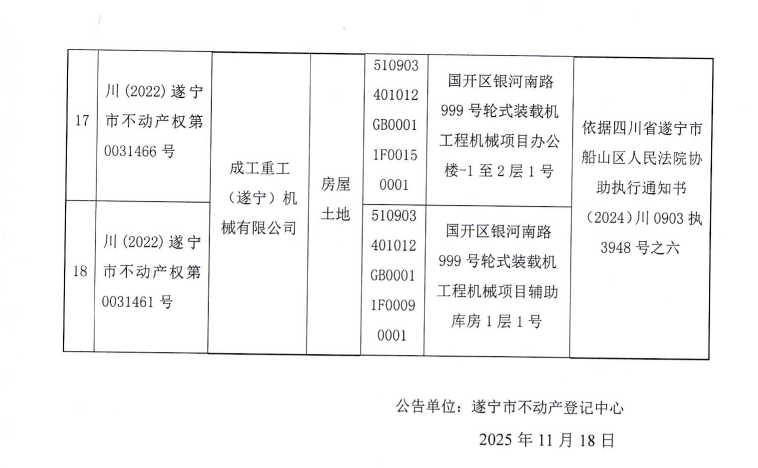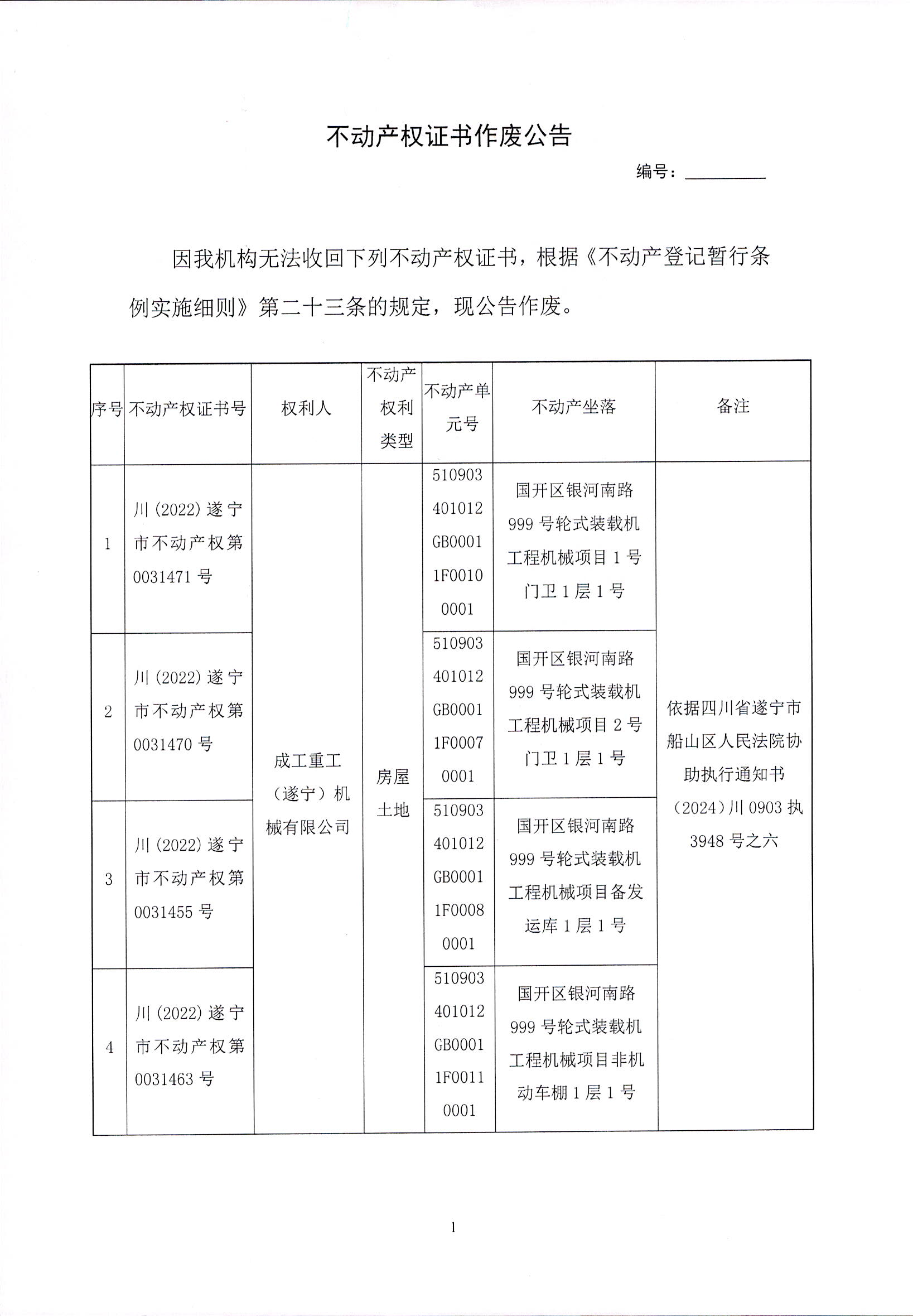 不动产权证书作废公告(成工重工(遂宁)机械有限公司)