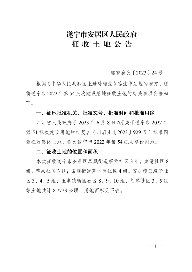 遂宁市安居区人民政府征收土地公告(遂安府公〔2023〕24号)