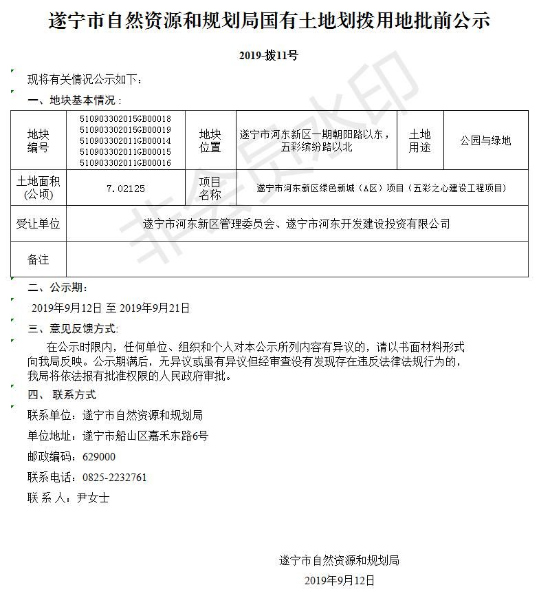 遂宁市自然资源和规划局国有土地划拨用地批前公示(2019-拨11号)