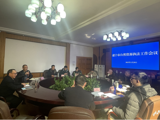 2023年1月28日、29日,遂宁市自然资源和规划局召开全市卫片审核及自然资源执法工作会议,总结2022年执法工作,安排部署卫片审核及2023年工作,结合全市卫片执法存在的问题再次解读《土地卫片执法图斑合法性判定规则》,并集中审核2022年卫片执法系统填报。会议由局党委委员、副局长杨丹林主持,市自然资源综合行政执法支队及派驻大队和各县(市、区)执法大队全体人员参加。