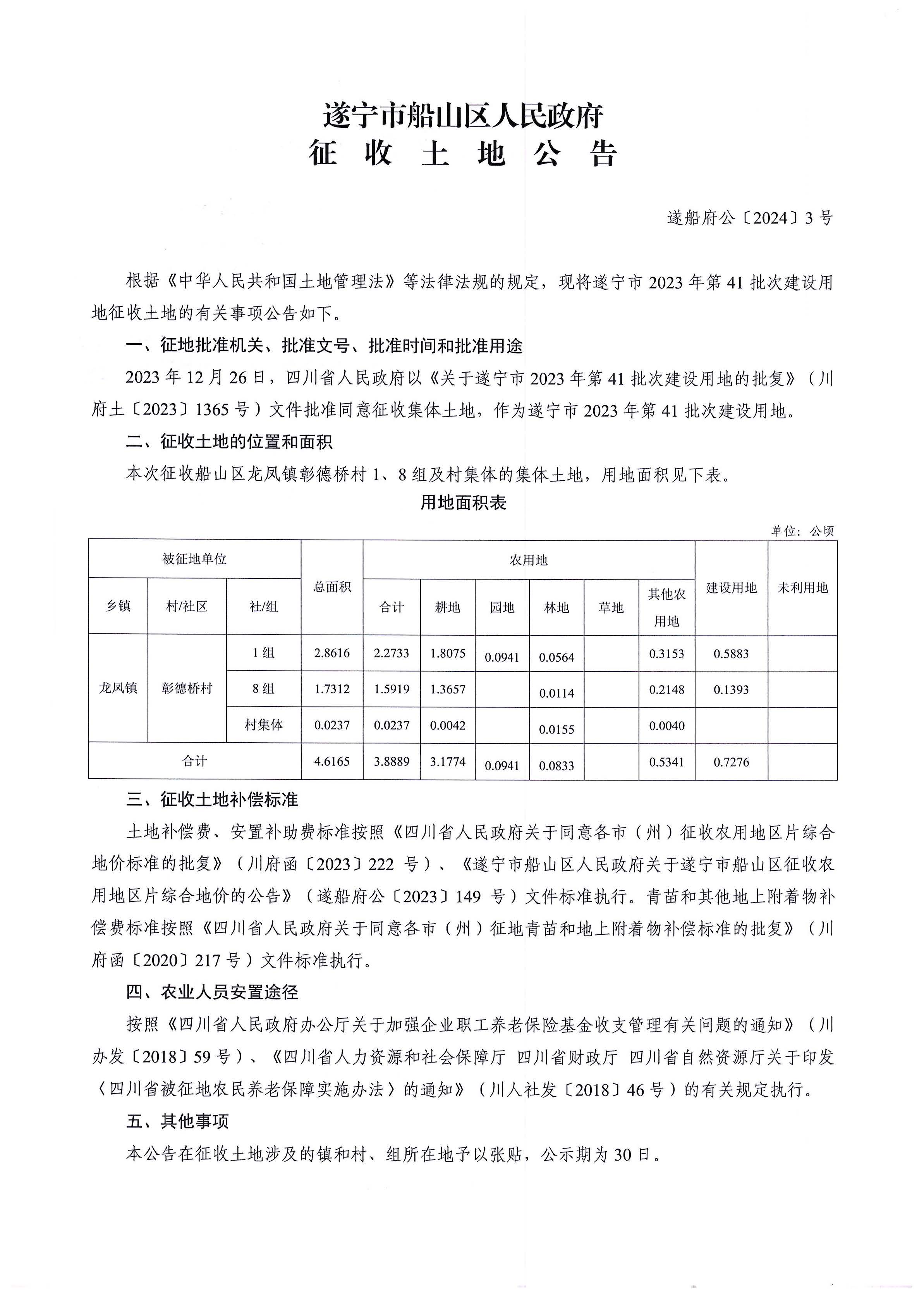 遂宁市船山区人民政府征收土地公告 (遂船府公〔2024〕3号)