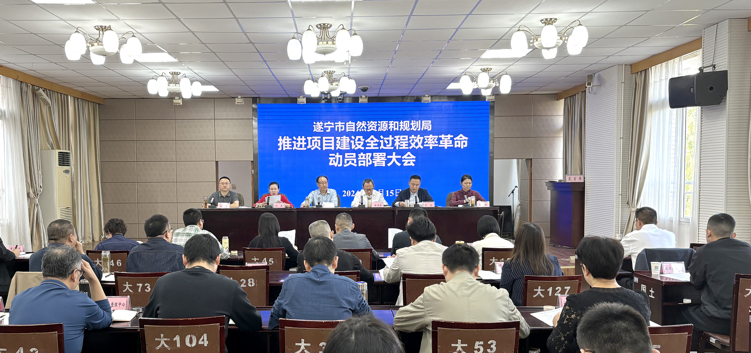 2024年10月15日,遂宁市自然资源和规划局召开推进项目建设全过程效率革命动员部署大会,党组书记、局长李斌主持会议并讲话。