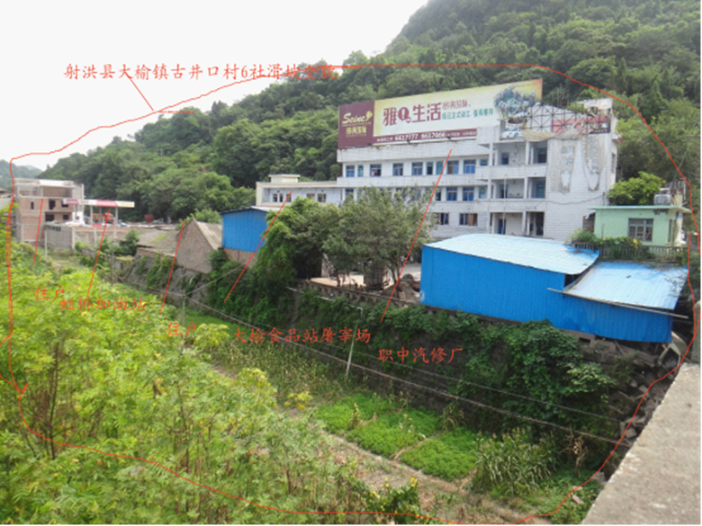 受今年7月突发强降雨影响和涪江涨水冲刷,8月13日,射洪县大榆镇古井口村6社汽修厂等处发生滑坡地质灾害,滑坡体出现了大面积裂缝,裂缝最宽处达0.5米,部分住户房屋严重开裂。整个滑坡体长约200米,宽约50米,平均厚度约10 米,体积达 10余万立方米。滑坡体内现有住户10户,个体企业3家,共威胁 41人及1000余万元的生命财产安全,加之滑坡体后缘为射(洪)盐(亭)县级公路,过往车辆和行人较多,滑坡体如果继续发展,将会造成重大财产损失和人员伤亡,并且垮塌土石将堵塞涪江河道,阻断县道公路通行。
