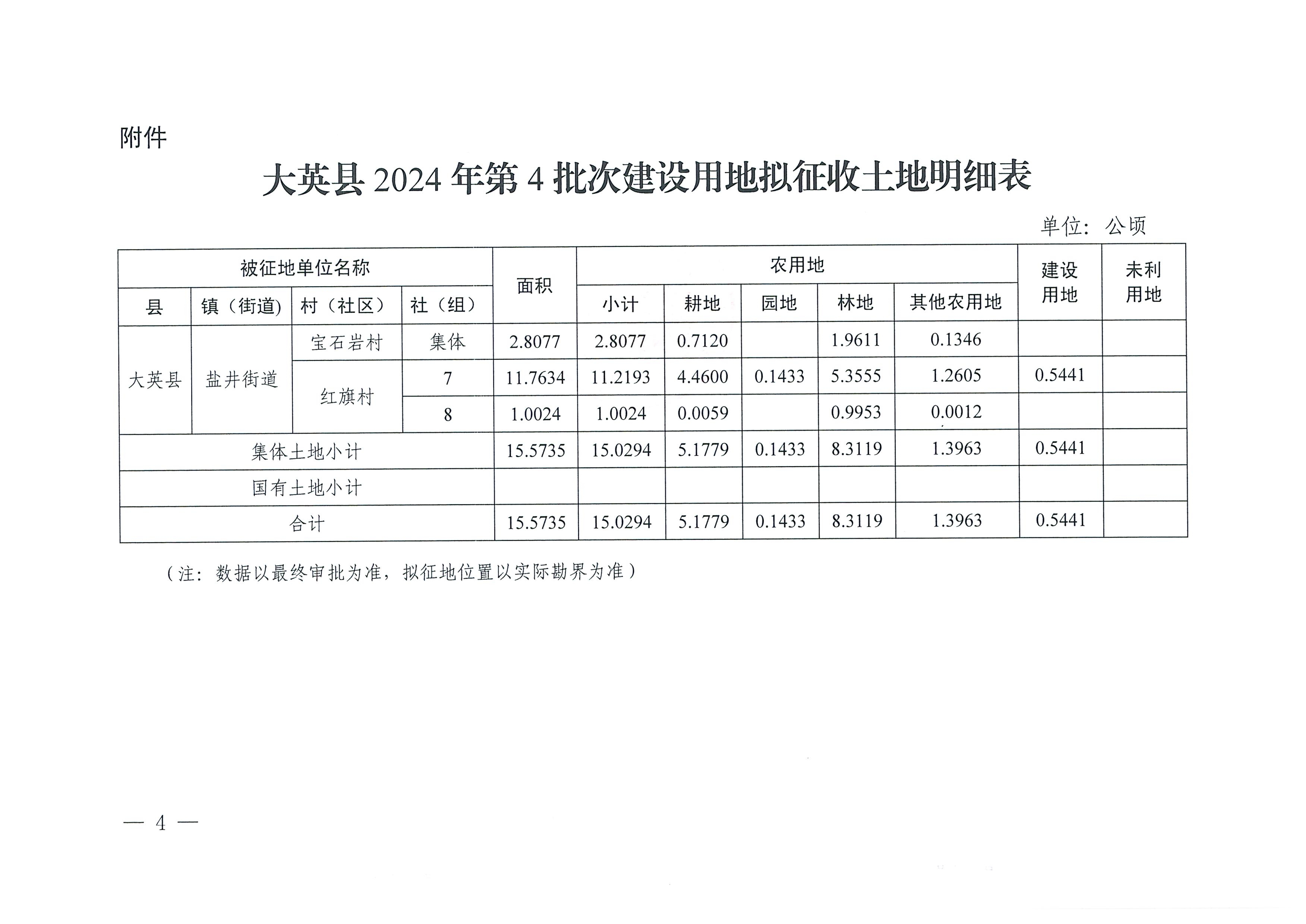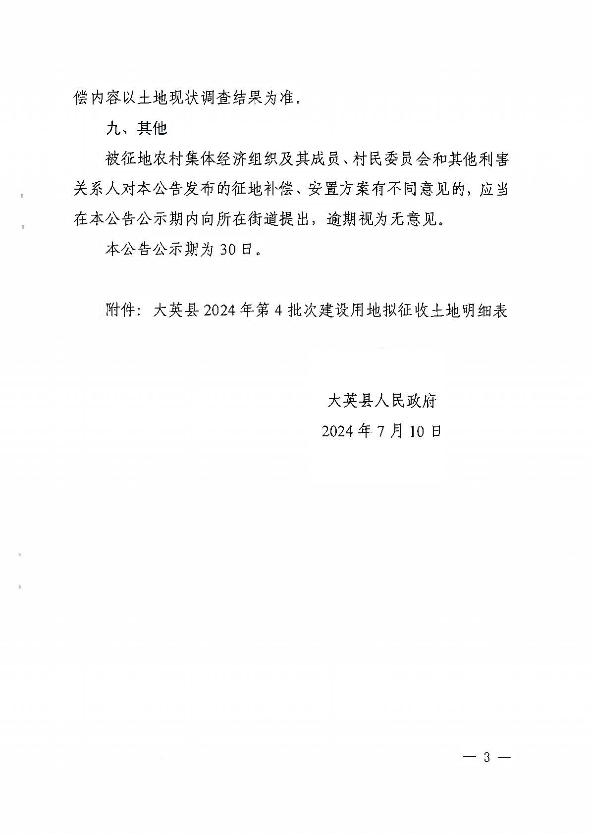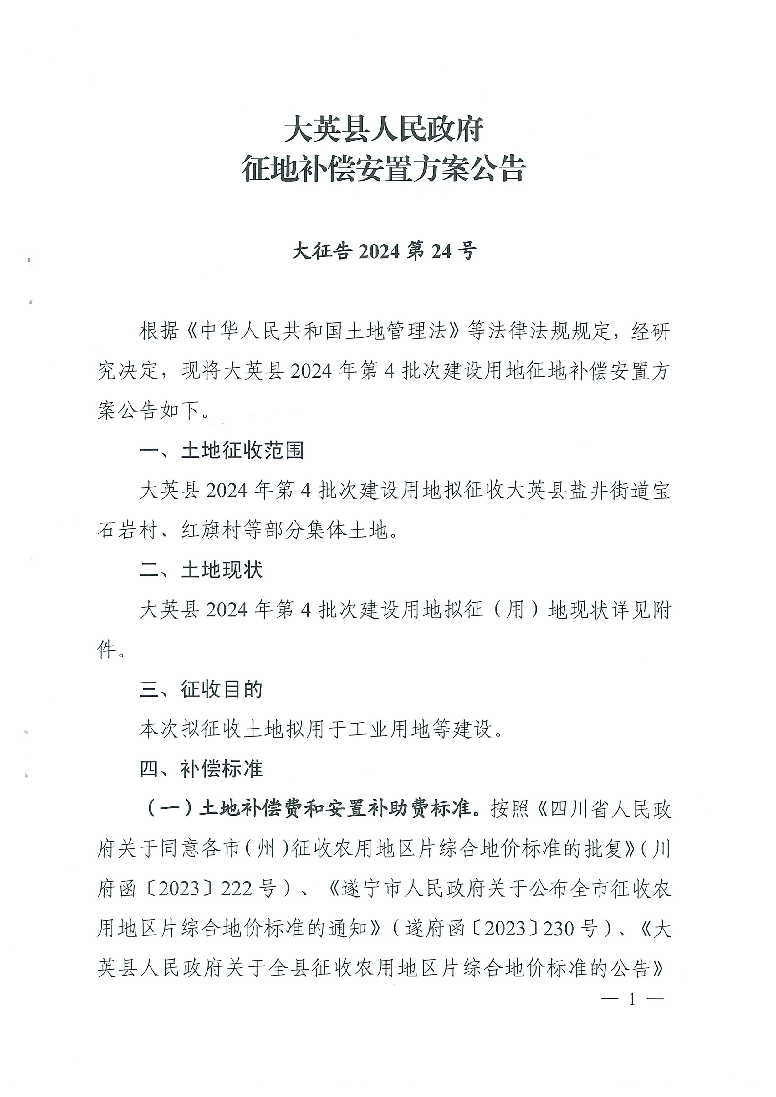 大英县人民政府征地补偿安置方案公告(大征告2024第24号)