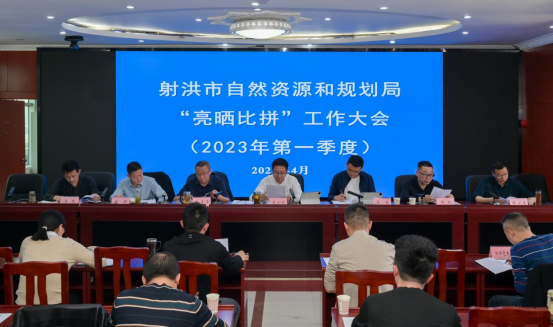 近日,射洪局召开2023年第一季度“亮晒比拼”工作大会,局领导班子成员,下属事业单位和派驻各镇自然资源规划所负责人及机关全体干部职工参加会议。