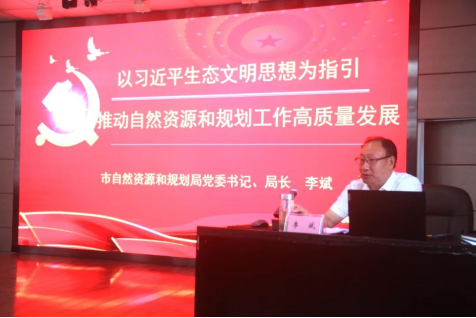 市自然资源和规划局党委书记、局长李斌以《以习近平生态文明思想为指引 推动自然资源和规划工作高质量发展》为题,结合自身学习习近平生态文明思想体会,从准确把握习近平生态文明思想的核心要义;牢牢把握自然资源和规划部门使命职责,促进高质量发展;踔厉奋发,勇毅笃行,为加快建设成渝中部现代化建设示范市和锂电之都贡献自然资源和规划力量三个方面为全体党员上了一堂生动的党课。