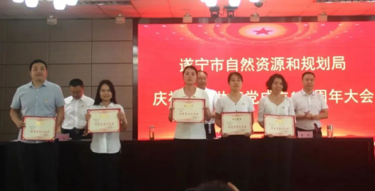 市自然资源和规划局党委副书记张志,宣读表彰文件,班子成员为优秀共产党员、优秀党务工作者和先进基层党组织代表颁发了荣誉证书。