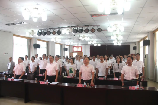 面对鲜艳的党旗,李斌带领全体党员重温入党誓词,铿锵有力的宣誓,表达了新时代共产党员的责任与担当,许下了对党忠诚、牢记使命的坚定承诺。