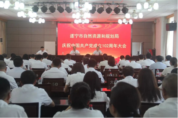 6月26日,遂宁市自然资源和规划局召开庆祝中国共产党成立102周年大会。会议在庄严的国歌声中拉开帷幕,局机关及直属单位全体党员合唱国歌,重温入党誓词。会上通报表彰“优秀共产党员”“优秀党务工作者”和“先进基层党组织”,开展了机关党委、机关纪委委员补选等工作。市自然资源和规划局党委书记、局长李斌以《以习近平生态文明思想为指引 推动自然资源和规划工作高质量发展》为题,从准确把握习近平生态文明思想的核心要义;牢牢把握自然资源和规划部门使命职责,促进高质量发展;踔厉奋发,勇毅笃行,为加快建设成渝中部现代化建设示范市和锂电之都贡献自然资源和规划力量三个方面为全体党员上了一堂生动的党课。