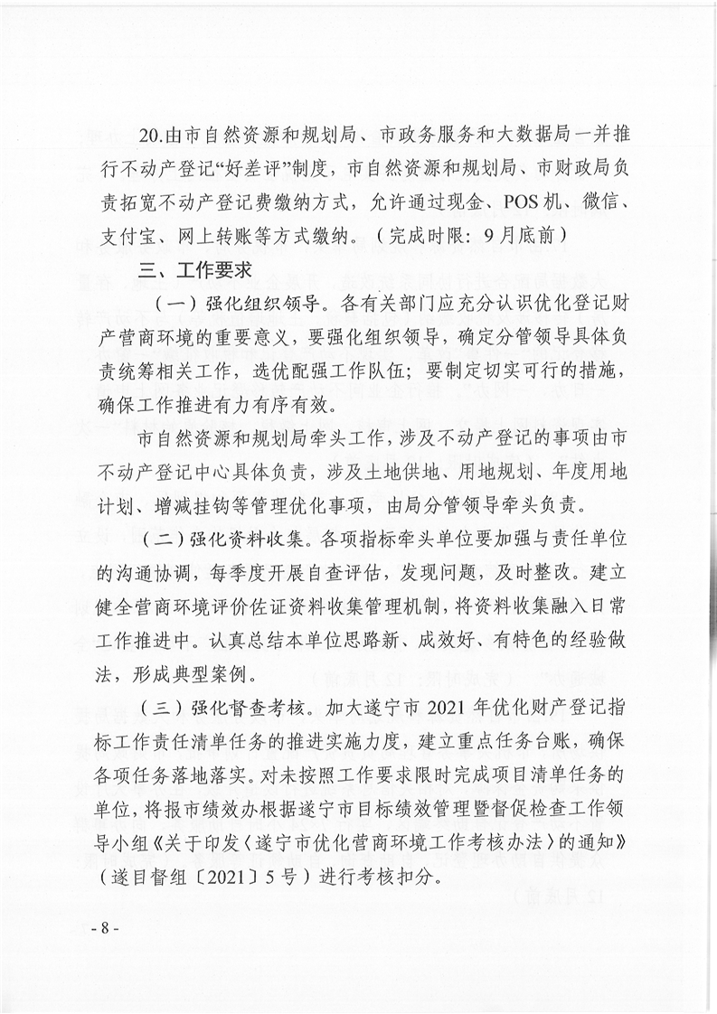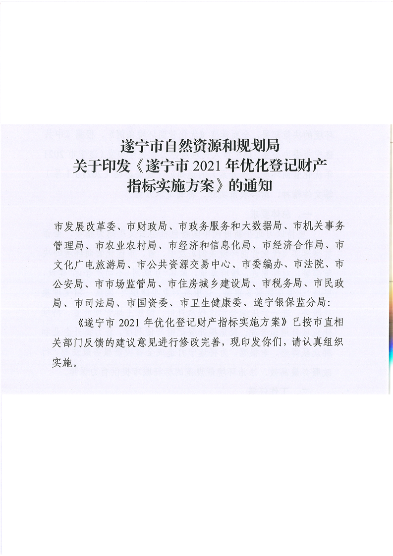 关于印发《遂宁市2021年优化登记指标实施方案》的通知