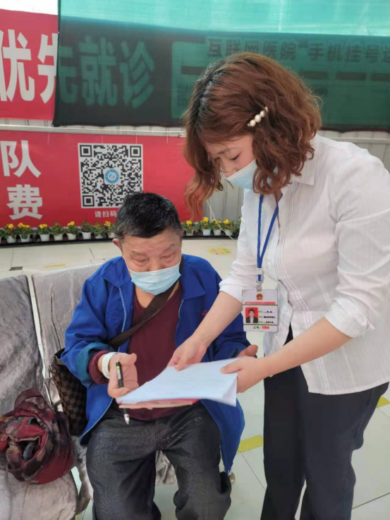 日前,冯女士到市政务服务大厅咨询,其丈夫病重住院,本人无法到政务大厅,该怎样办理减少共有人业务。了解这一情况后,不动产登记中心党员志愿服务者带着相关表单资料来到医院住院部,遵循医院疫情防控相关要求,在住院部外为老人讲解办事流程和相关手续。在确定老人病情稳定、意识清楚的前提下,现场核对身份证原件,帮助老人填写申请书并签字,为老人备齐了办理业务所需的资料。