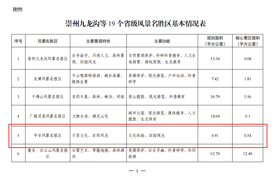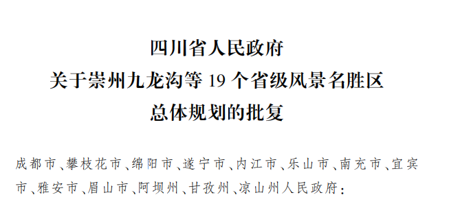 2023年12月15日,《四川省人民政府关于崇州九龙沟等19个省级风景名胜区总体规划的批复》(川府函〔2023〕302 号)同意《平安风景名胜区总体规划(2021—2035年)》编制成果,为本次规划编制工作画上了圆满的句号。