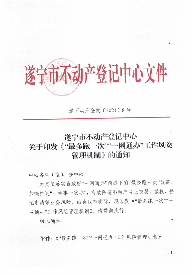 关于印发《“最多跑一次”“一网通办”工作风险管理机制》的通知