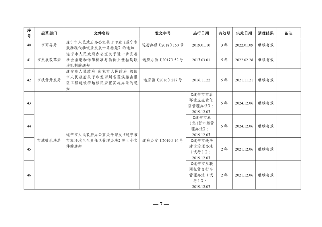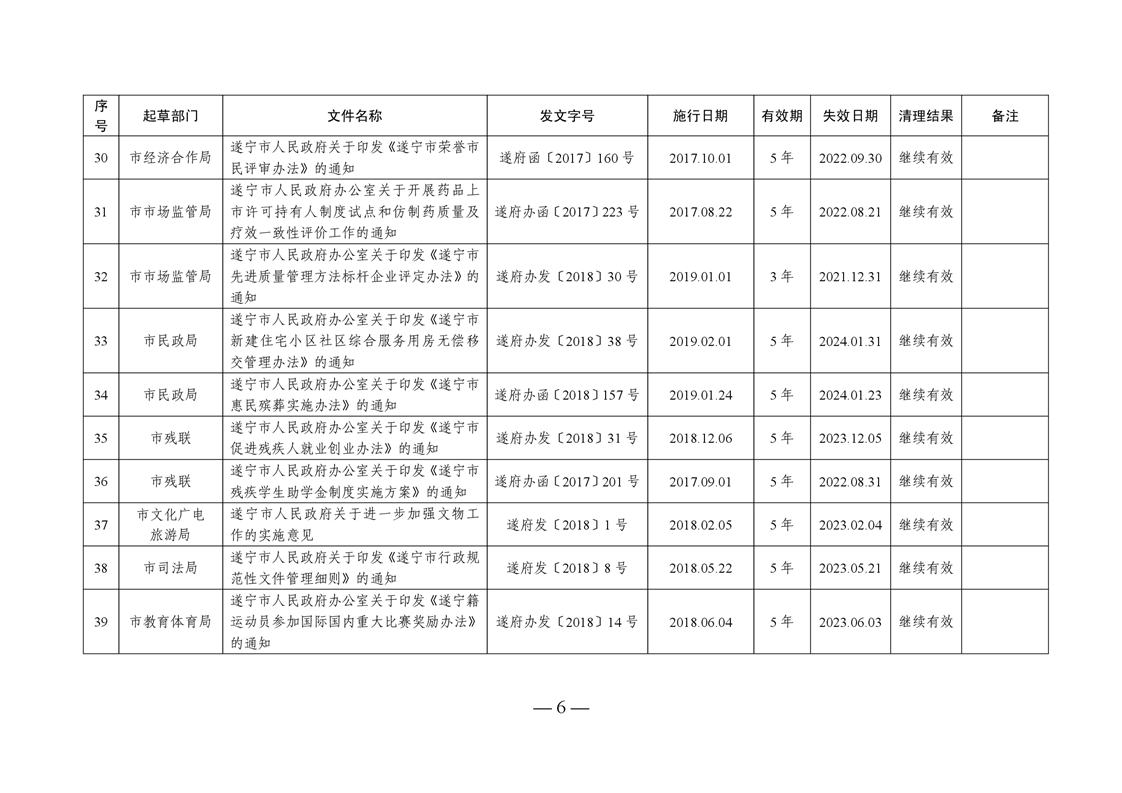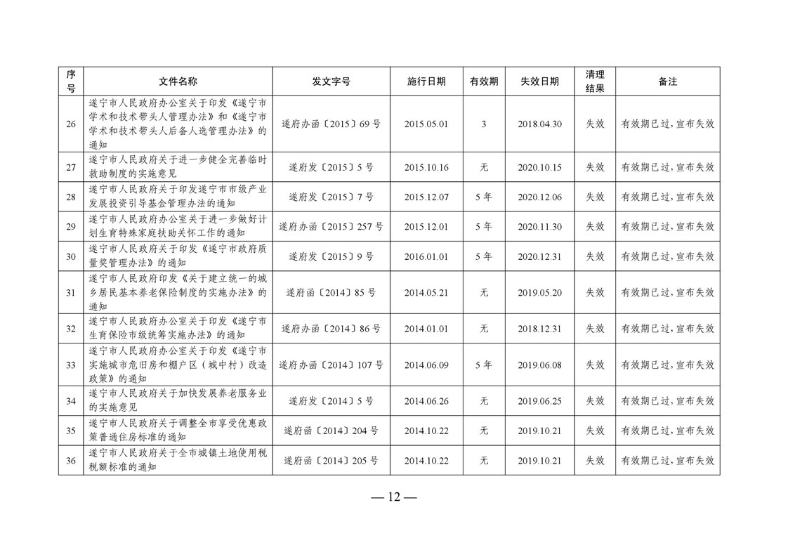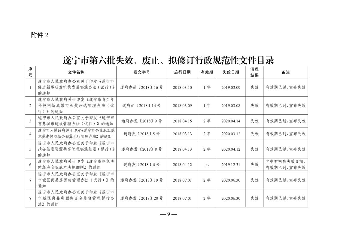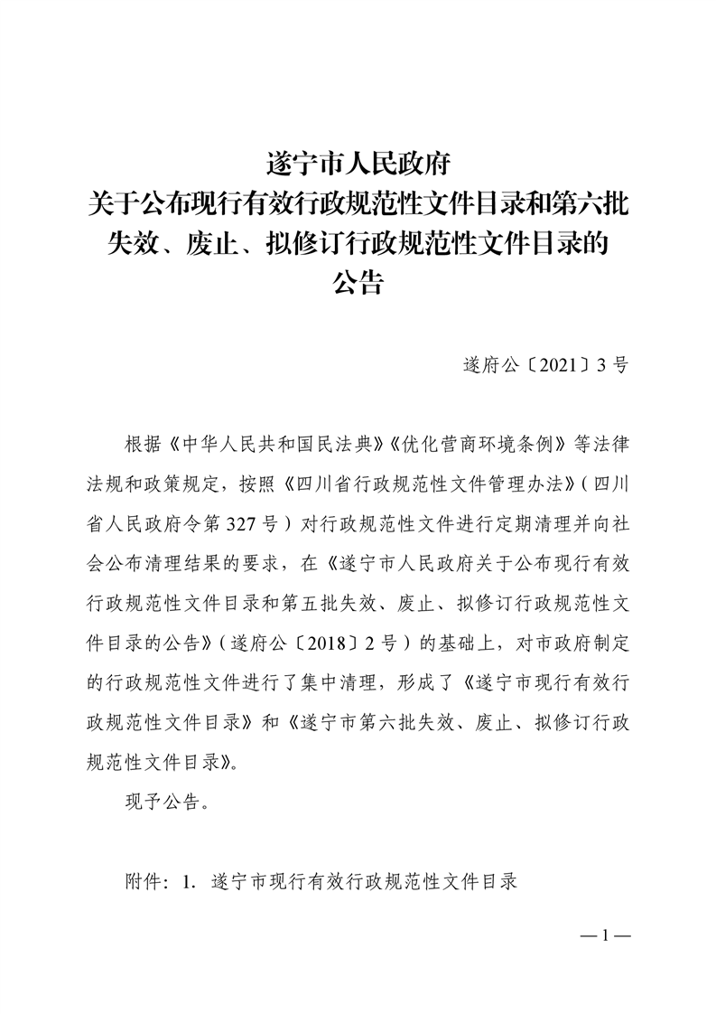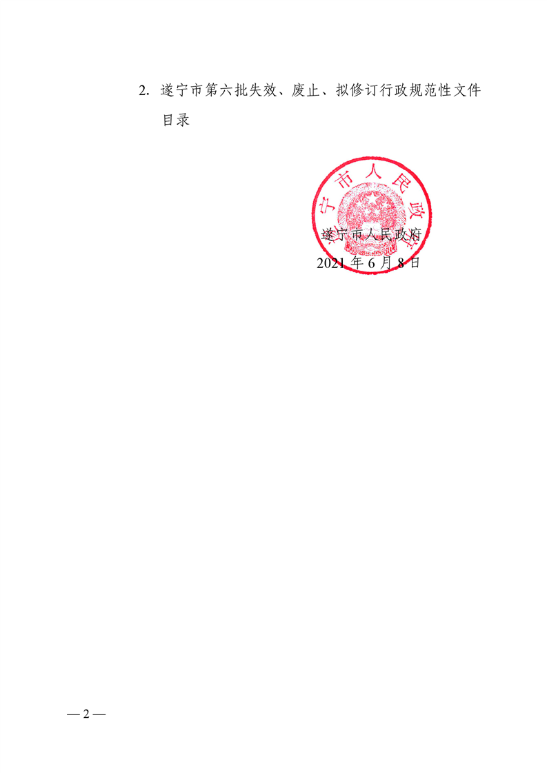 遂宁市人民政府关于公布现行有效行政规范性文件目录和第六批失效、废止、拟修订行政规范性文件目录的公告