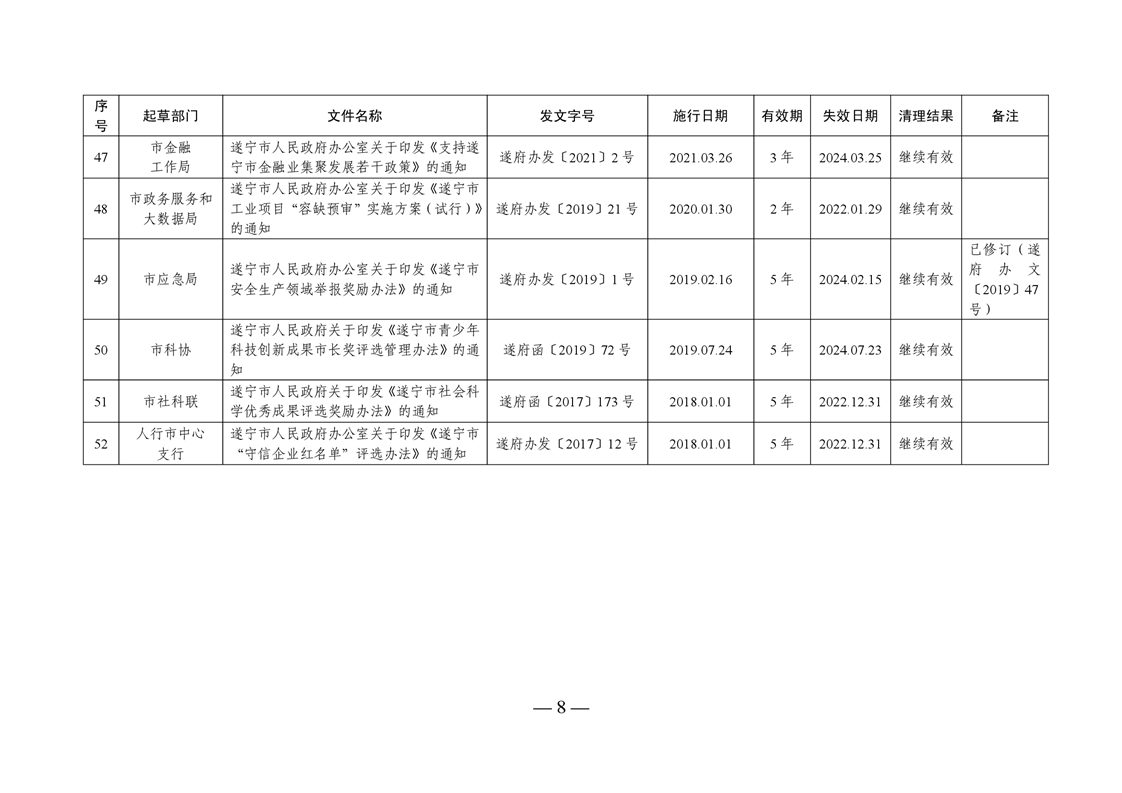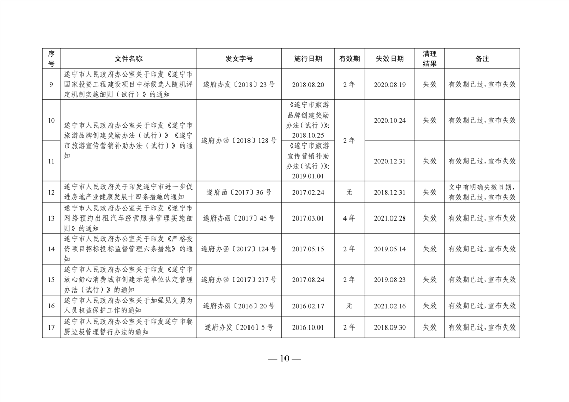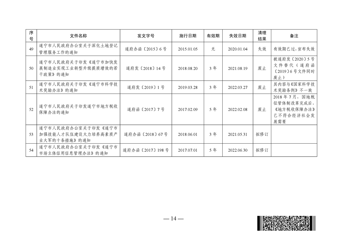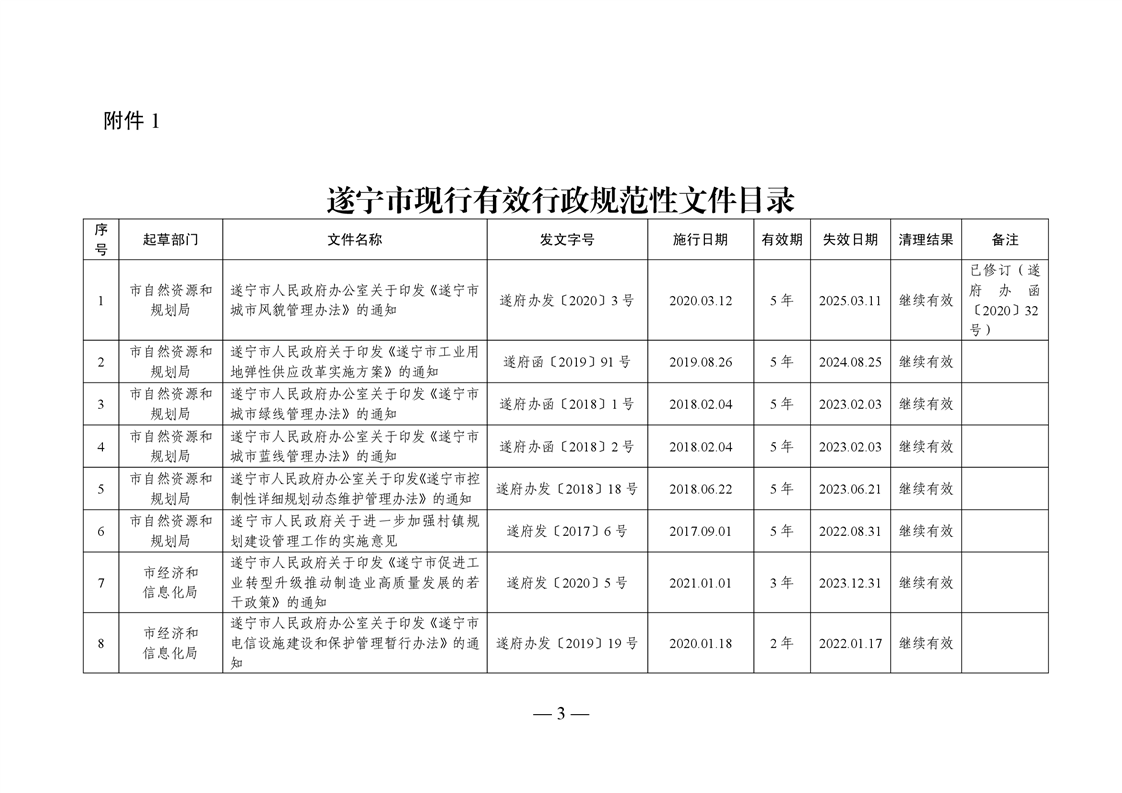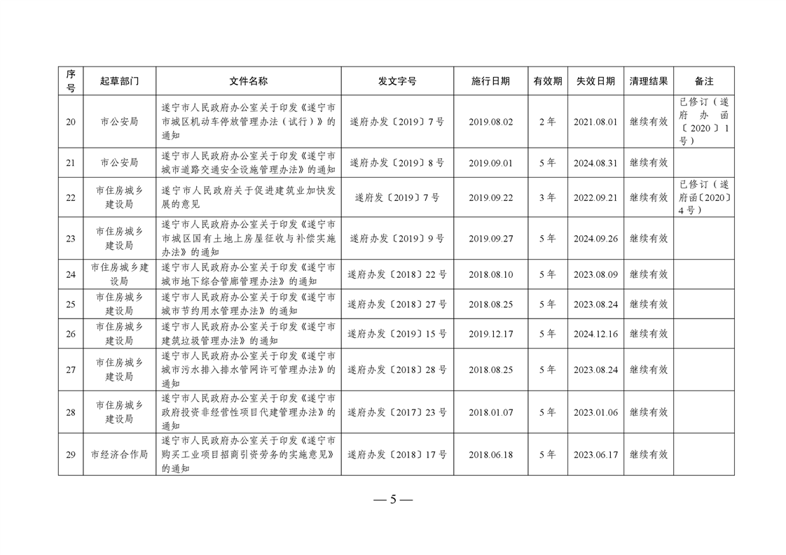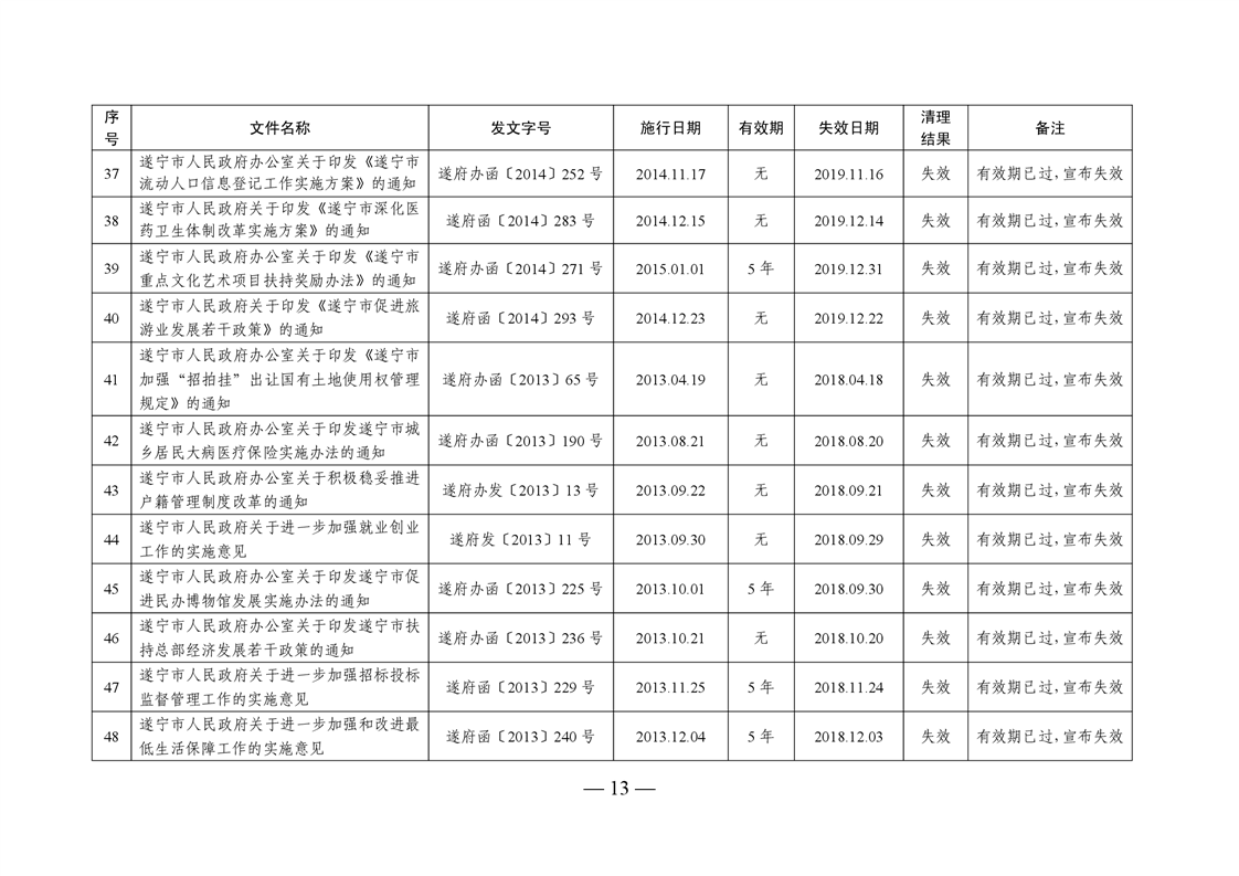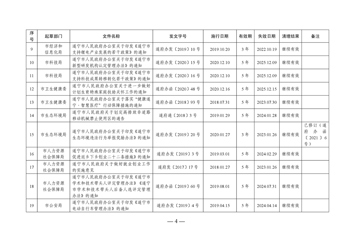 遂宁市人民政府关于公布现行有效行政规范性文件目录和第六批失效、废止、拟修订行政规范性文件目录的公告