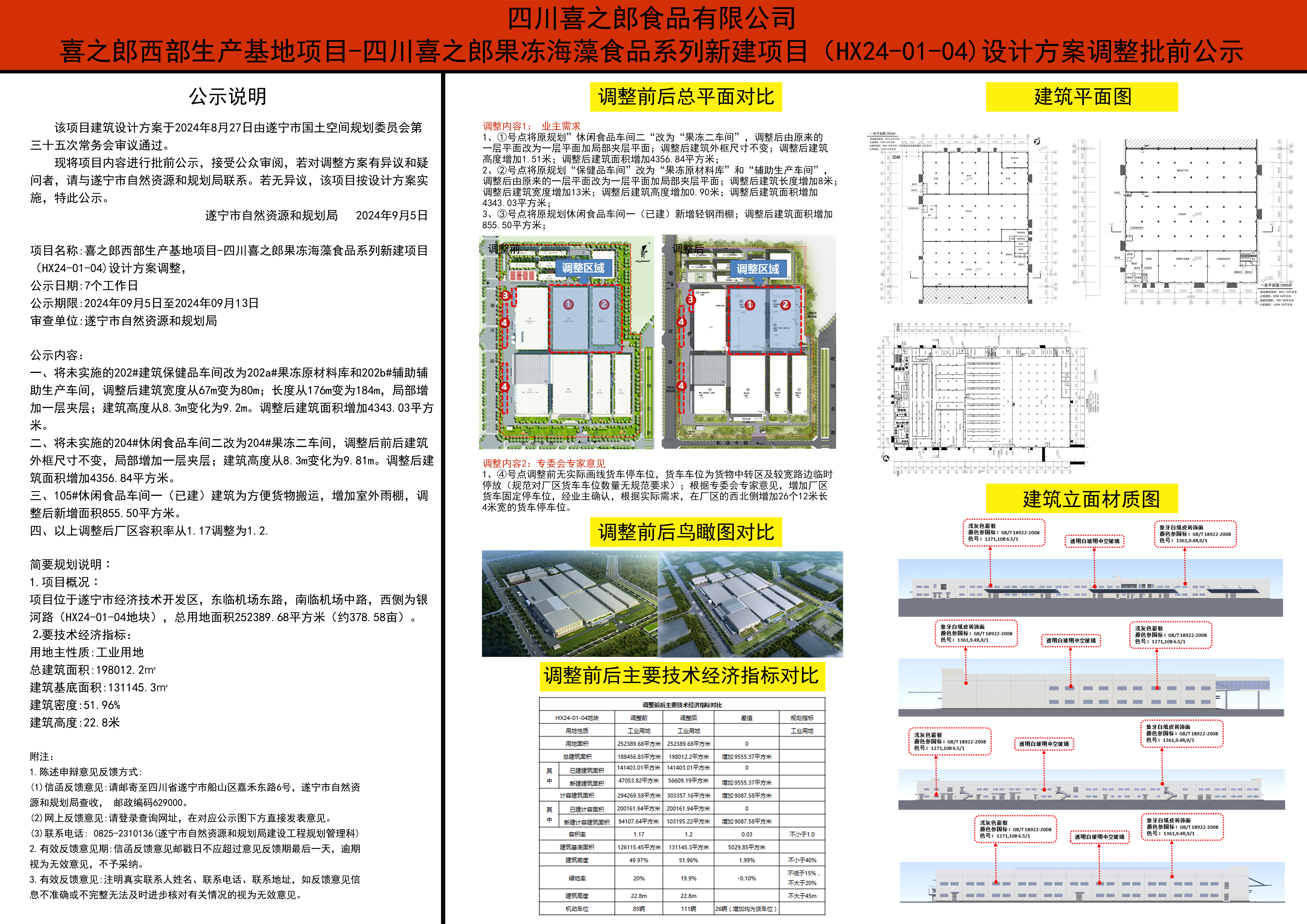 喜之郎西部生产基地项目-四川喜之郎果冻海藻食品系列新建项目(HX24-01-04)设计方案调整批前公示
