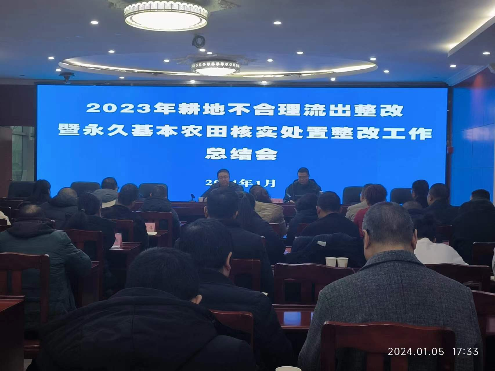 1月5日,市自然资源和规划局组织召开2023年耕地不合理流出整改暨永久基本农田核实处置整改工作总结会。