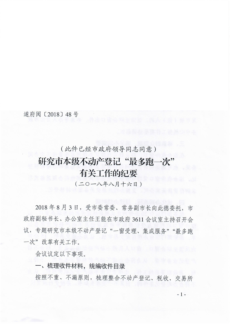 关于研究市本级不动产登记“最多跑一次”有关工作的纪要