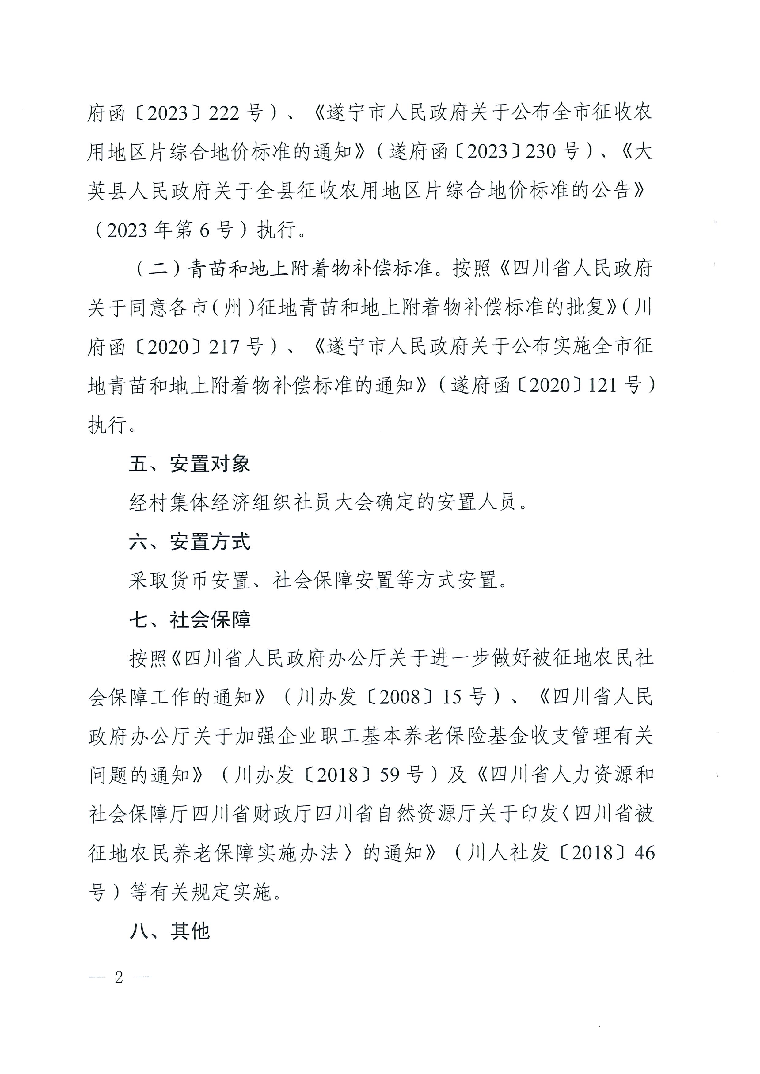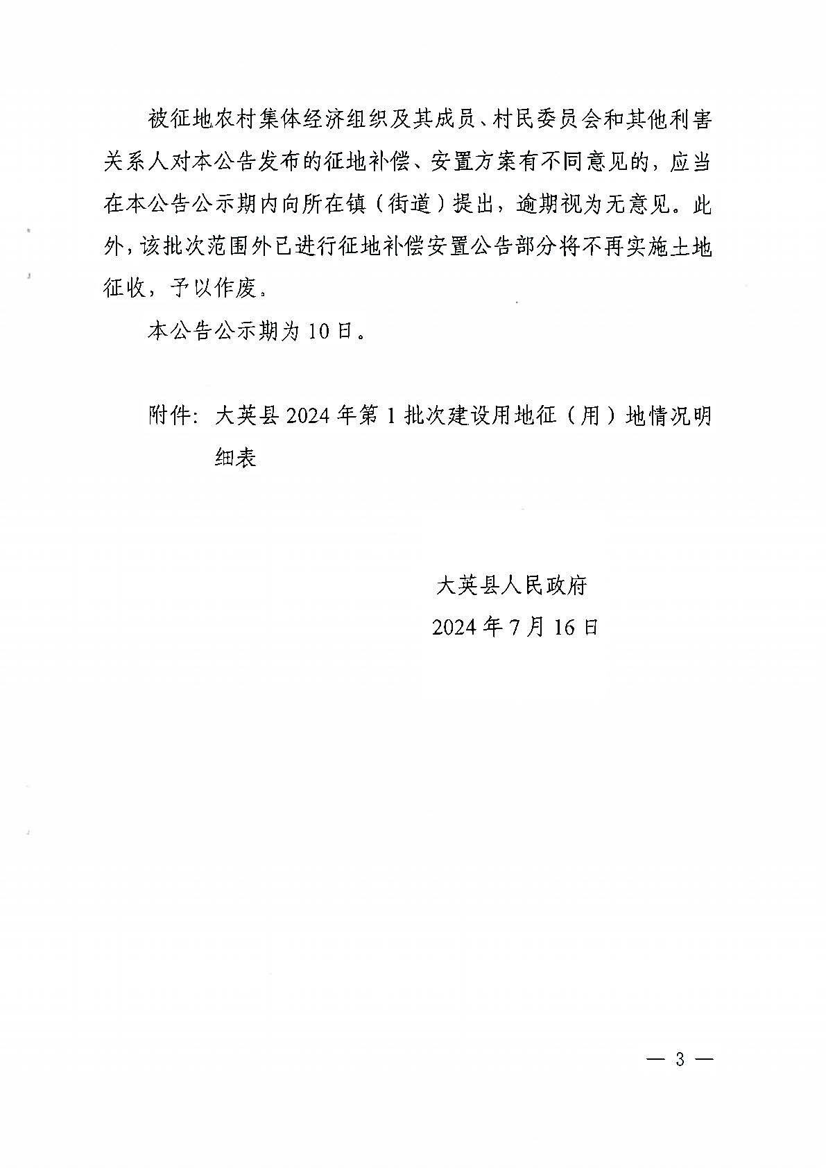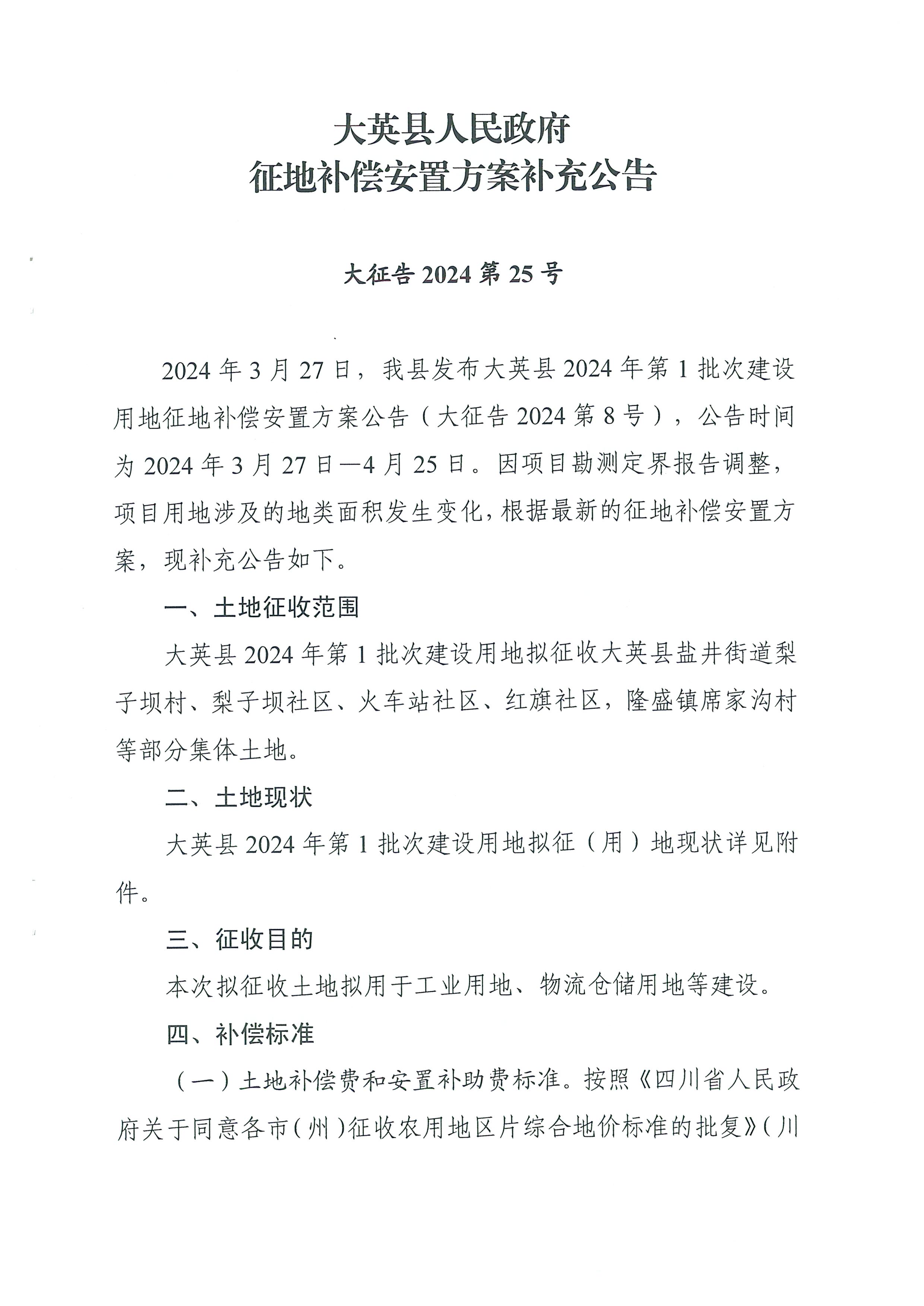 大英县人民政府征地补偿安置方案补充公告(大征告2024 第25号)